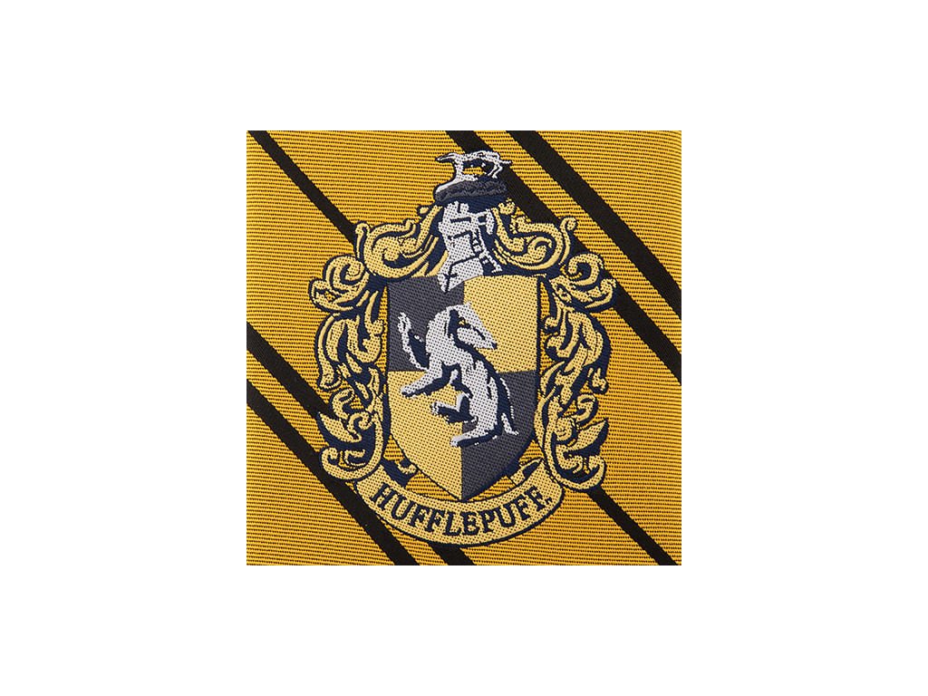 Elegantní kravata v barvách Mrzimoru - koleje na škole čar a kouzel v Bradavicích. Zdobí ji erb této koleje. Skvělý doplněk obleku pro fanoušky příběhů o Harry Potterovi.