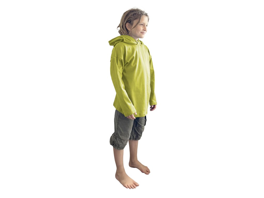 Dětská mikina se špičatou kapucí, vyrobená s láskou v naší dílně z příjemné bio bavlny (opatřeno certifikací). Nepřehlédnutelná díky elegantnímu střihu, má dlouhé rukávy a širokou kapuci, která zakryje i tu nejbujnější kštici. Materiál je velice příjemný, lehký, vzdušný a pohodlný. Mikina je k mání v pěti různých velikostech – pro skřítky různého vzrůstu. Velikost: 116, 128, 140, 152, 164