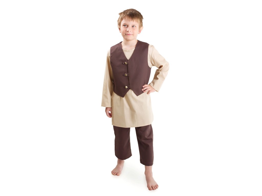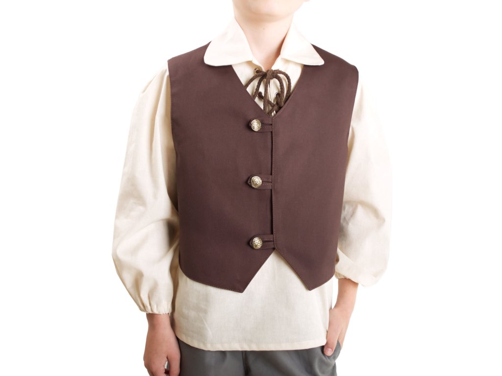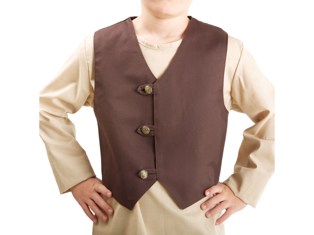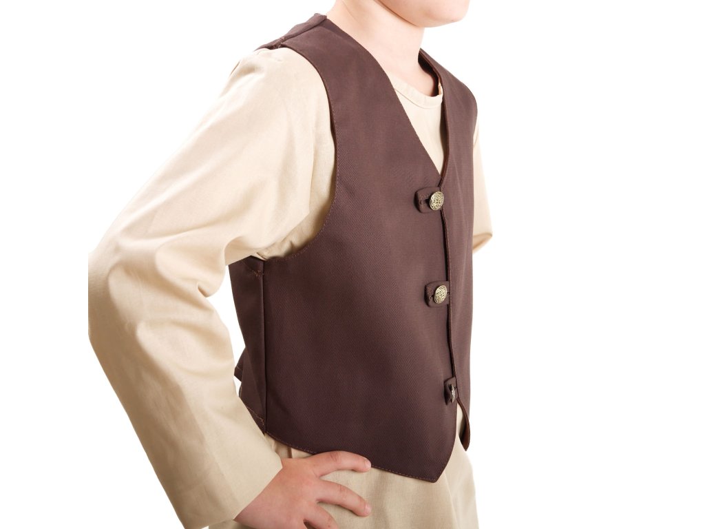 Krásná dětská vesta Hobit je jako stvořená pro fantasy či historický kostým. Váš prcek ji však může hrdě nosit i při běžné procházce do parku, do školky či školy nebo do města na nákup. Vesta je vyrobena ze 100% bavlny (kepr), přední díly jsou podšité bavlněným plátnem. Vpředu se zapíná na 3 knoflíky a vzadu je vypasovaná gumou, takže vesta skvěle padne jak malým i větším hobitkům. Vestičku vyrábíme i v dalších barvách: šedá, vínová a zelená. Dětská vesta Hobit byla ušita v naší krejčovské dílně. Podívejte se na další dětské kostýmy z naší nabídky a načerpejte inspiraci pro další karneval, halloween nebo dětský LARPový tábor.