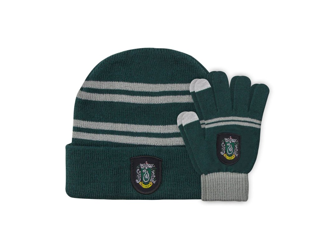 Čepice a rukavice dětské velikosti v barvách a se znaky koleje Zmijozel v Bradavicích, škole čar a kouzel z příběhů o Harry Potterovi. V této stylové sadě naleznete kromě čepice pár šikovných rukavic se speciálními koncovkami pro palec a ukazovák, které usnadňují práci s dotykovými obrazovkami (smartphony, tablety, apod.).