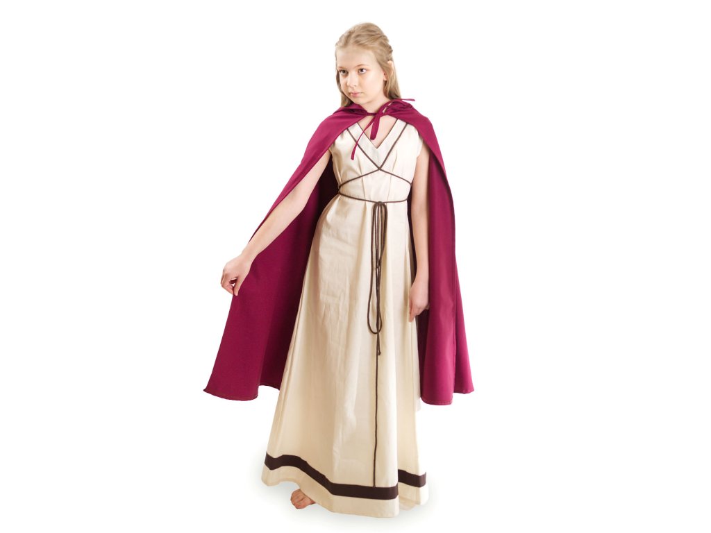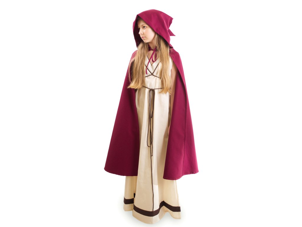 Dětský plášť Hobit ve vínové barvě, z pevné bavlněné látky (kepr) ušitý v naší dílně padne vašemu hobitkovi či hobitce jako ulitý. Praktická šňůrka na zavazování pod krkem udrží plášť na svém místě. Díky své délce, kterou nosili hobiti, je praktický při všech hrách či bojích. Ani ten nejmenší hobit se nemusí bát, že by si šlapal na svůj plášť. Dětský plášť Hobit se hodí nejen k mnoha dalším fantasy kostýmům, ale také k historickým. Je libo rytíř, panoš nebo kouzelník? Není problém, fantasii se meze nekladou. Doveďte s dětmi kostým k dokonalosti a pořiďte další nezbytné doplňky ke kostýmu. K dětskému plášti se například hodí dívčí gotické šaty (na fotkách) nebo dětská košile Hobit. Dětský pláštík šijeme také v dalších barvách: hnědý, černý a šedý. Pláště jsou ve čtyřech velikostech, délka je měřena od krku na zadním díle (bez kapuce): 122/128 - délka 78 cm 134/140 - délka 88 cm 146/152 - délka 98 cm 158/164 - délka 108 cm