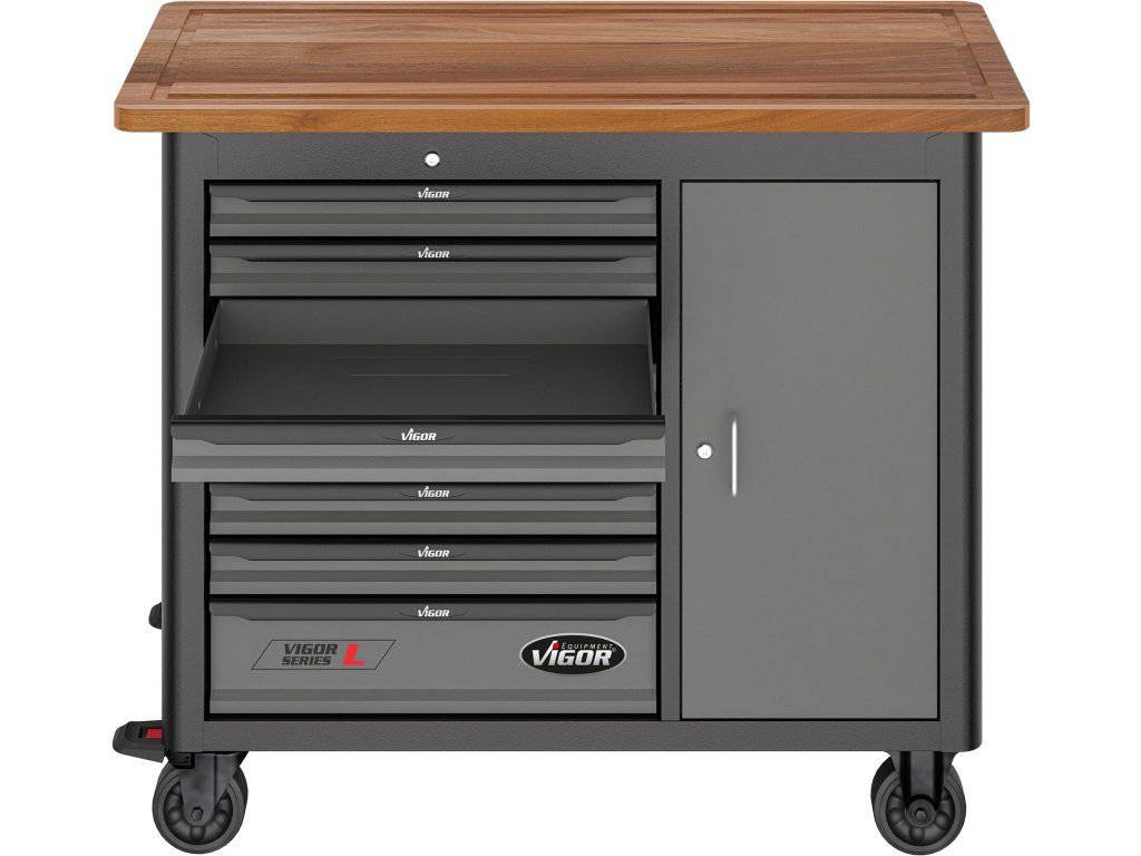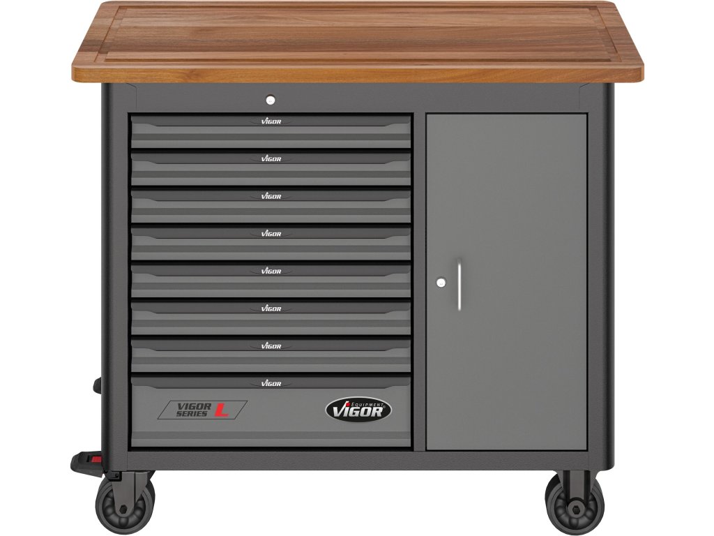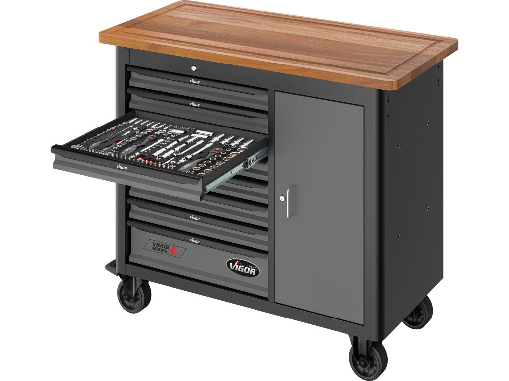 Dílenský vozík s nářadím 256 dílů, 8 zásuvek a dvířka, VIGOR 1000 - V5156