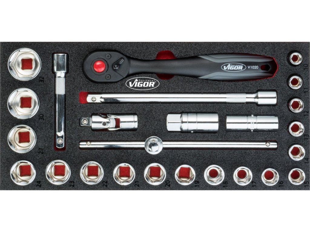 | 20 ks | Nástrčné klíče 1/2": 10; 11; 12; 13; 14; 15; 16; 17; 18; 19; 20; 21; 22; 23; 24; 27; 30; 32 mm |