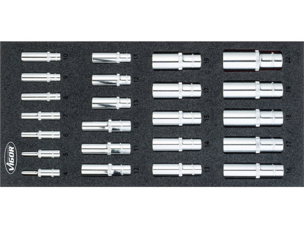 | 28 ks | Nástrčné klíče 3/8": 6; 7; 8; 9; 10; 11; 12; 13; 14; 15; 16; 17; 18; 19; 20; 21; 22; 24 mm |