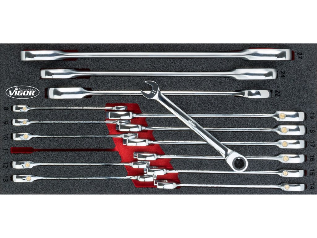 | 15 ks | Ráčnové očkoploché klíče: 8; 9; 10; 11; 12; 13; 14; 15; 16; 17; 18; 19; 22; 24; 27 mm |