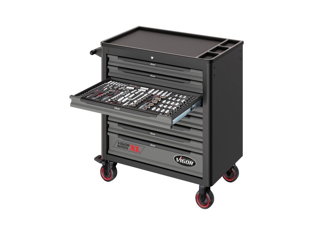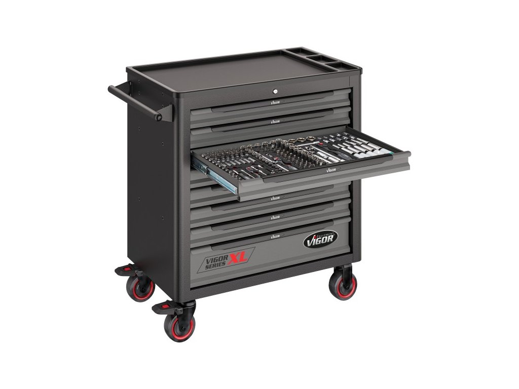 Dílenský vozík s nářadím 499 dílů, VIGOR 1000XL, 8 zásuvek - V5434