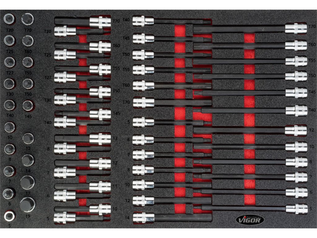 | 32 ks | Nástrčné hlavice s bitem TORX 1/2": T20, T25, T27, T30, T40, T45, T50, T55, T60, T70 |