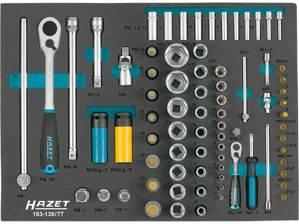 17 ks | Nástrčné klíče 1/2": 10, 11, 12, 13, 14, 15, 16, 17, 18, 19, 20, 21, 22, 24, 27, 30, 32 mm. |