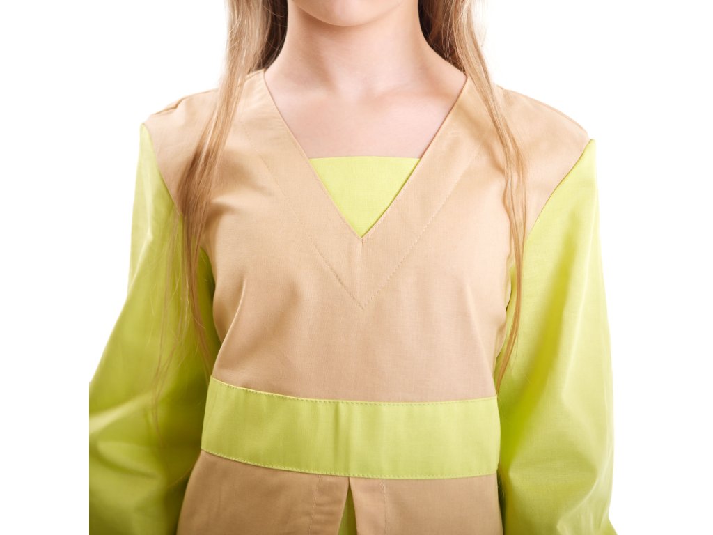 Okouzlující dívčí šaty Arwen ze 100% bavlny se hodí pro každou mladou slečnu, která touží být princeznou či královnou. Díky zavazování v pase se dají šaty krásně vypasovat na každou postavu. Dívčí šaty Arwen jsou vhodné nejen jako základ pro fantasy či historický kostým, ale také na běžné nošení. Návrh a samotné dílo vzniklo v naší krejčovské dílně. Šaty Arwen šijeme také v tmavší variantě. Naše šikovné švadlenky daly život ještě dalším kouskům, které mohou být součástí šatníku nejen vaší malé princezny, ale také rytíře či prince. Mrkněte na všechny dětské kostýmy, které pro vás máme.