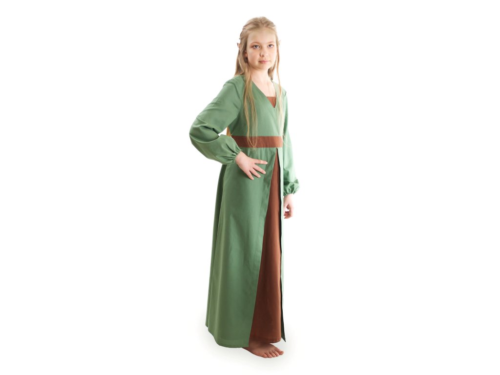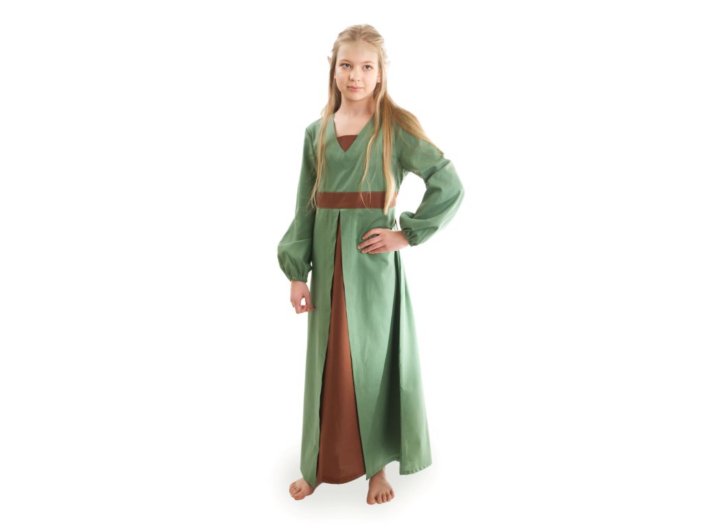 Okouzlující dívčí šaty Arwen ze 100% bavlny se hodí pro každou mladou slečnu, která touží být elfí princeznou. Díky zavazování v pase se dají šaty krásně vypasovat na každou postavu. Dívčí šaty Arwen jsou vhodné nejen jako základ pro fantasy či historický kostým, ale také na běžné nošení. Návrh a samotné dílo vzniklo v naší krejčovské dílně. Šaty Arwen šijeme také ve světlejší variantě. Naše šikovné švadlenky daly život ještě dalším kouskům, které mohou být součástí šatníku nejen vaší malé princezny, ale také rytíře či prince. Mrkněte na všechny dětské kostýmy, které pro vás máme.