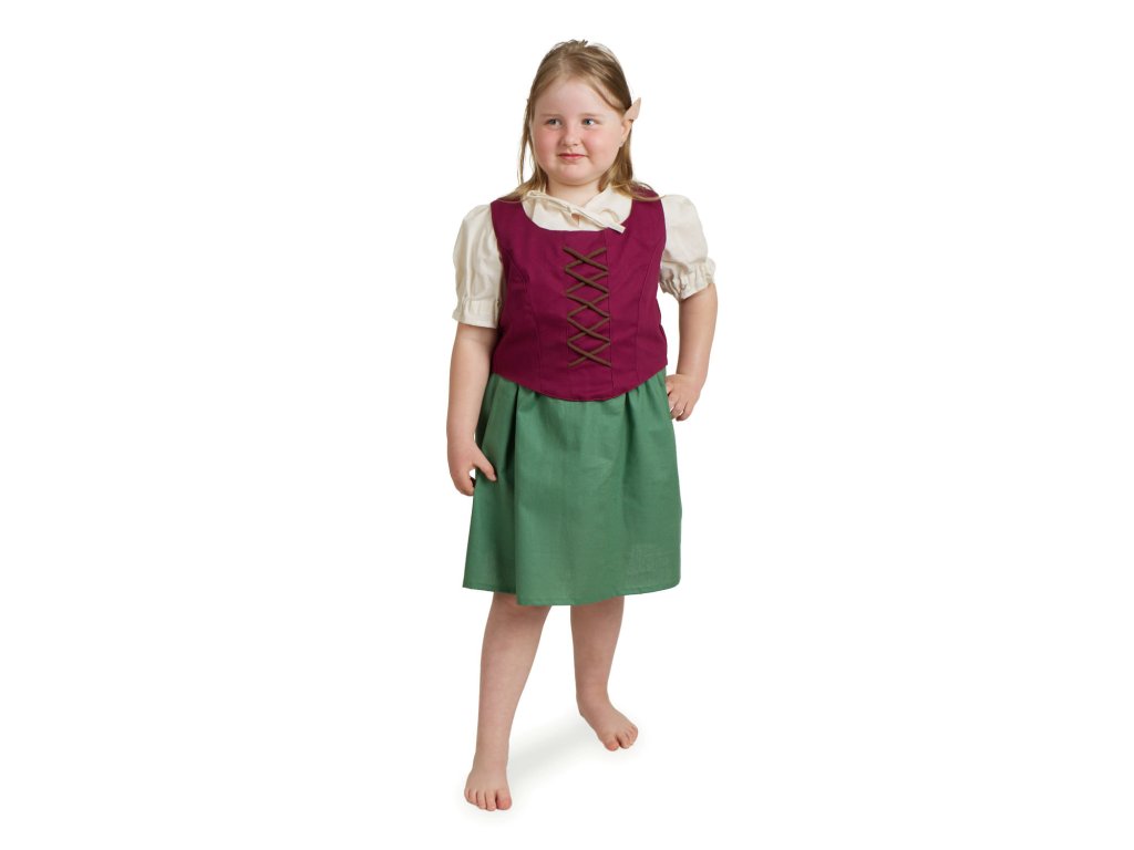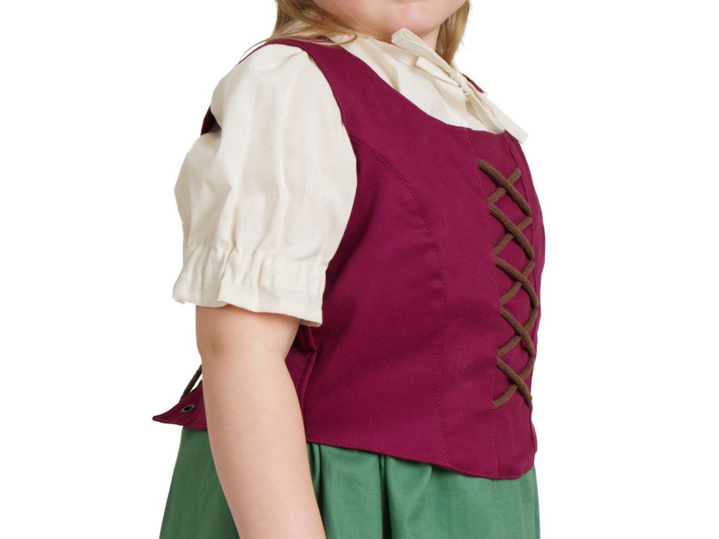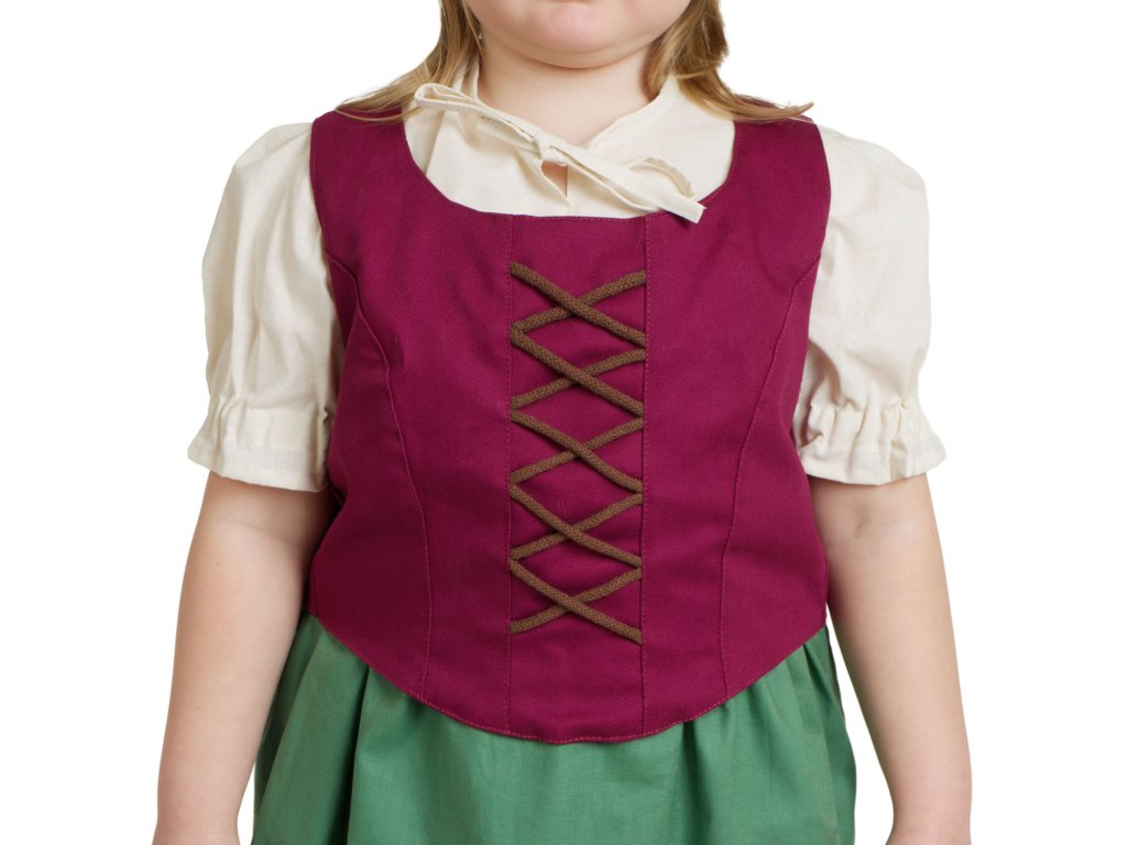Jednoduchý dívčí živůtek ve vínové barvě patří rozhodně k základní výbavě mladé slečny chystající se na nějaké to mecheche jako je maškarní, karneval či halloween. Dívčí živůtek se skvěle hodí jako doplněk k historickému nebo fantasy kostýmu. Zkombinujte s naší hobití sukní, zástěrkou a halenkou a hobití kostým je hotový! Dívčí živůtek Hobitka vznikl v naší dílně pod taktovkou našich švadlenek. Je vyroben z pevné bavlněné látky (kepr) a podšitý plátnem, díky zavazování na zádech skvěle padne na každou dívčí postavu. A co barva? To je občas oříšek… no aby to ladilo k sukni, botám, však to znáte. Dívčí živůtek Hobitka pro vás máme ve třech barvách, stačí si jen vybrat: