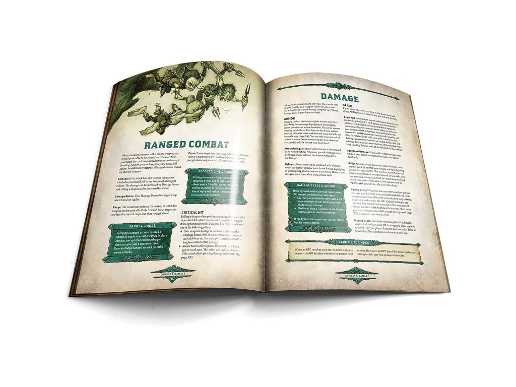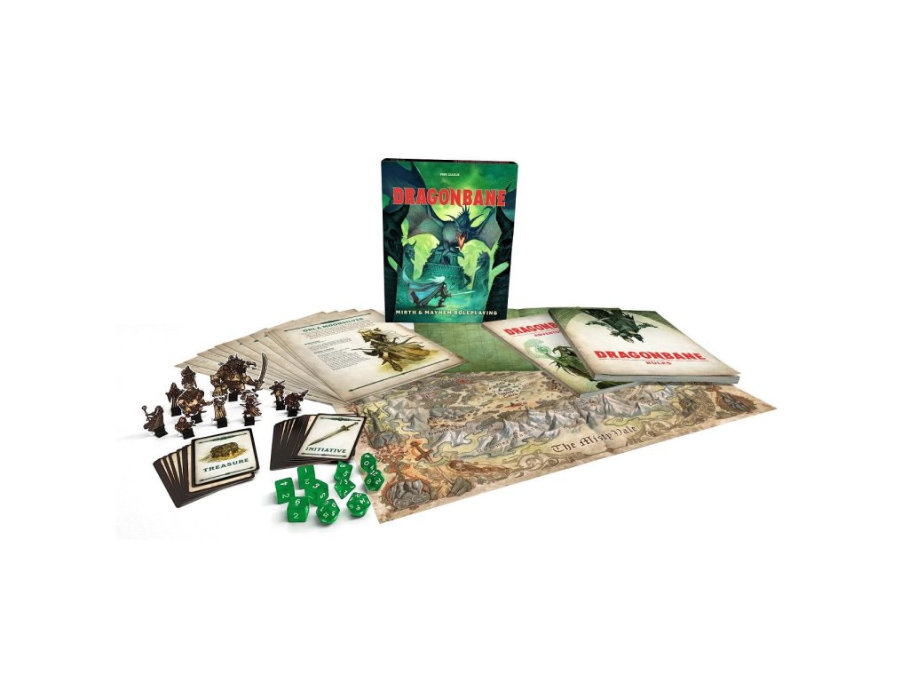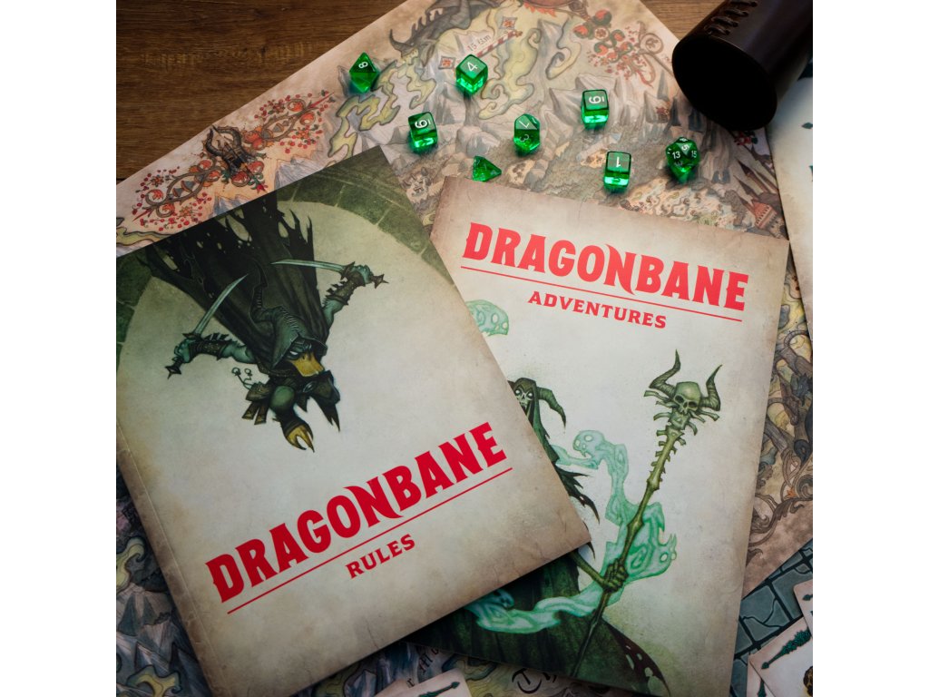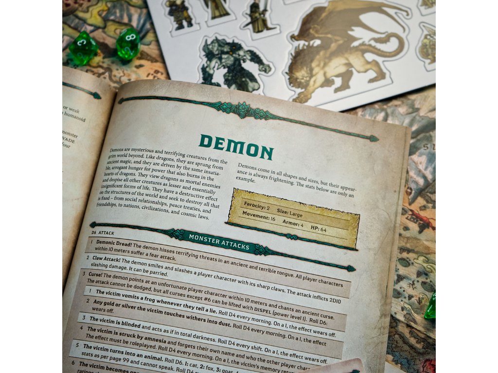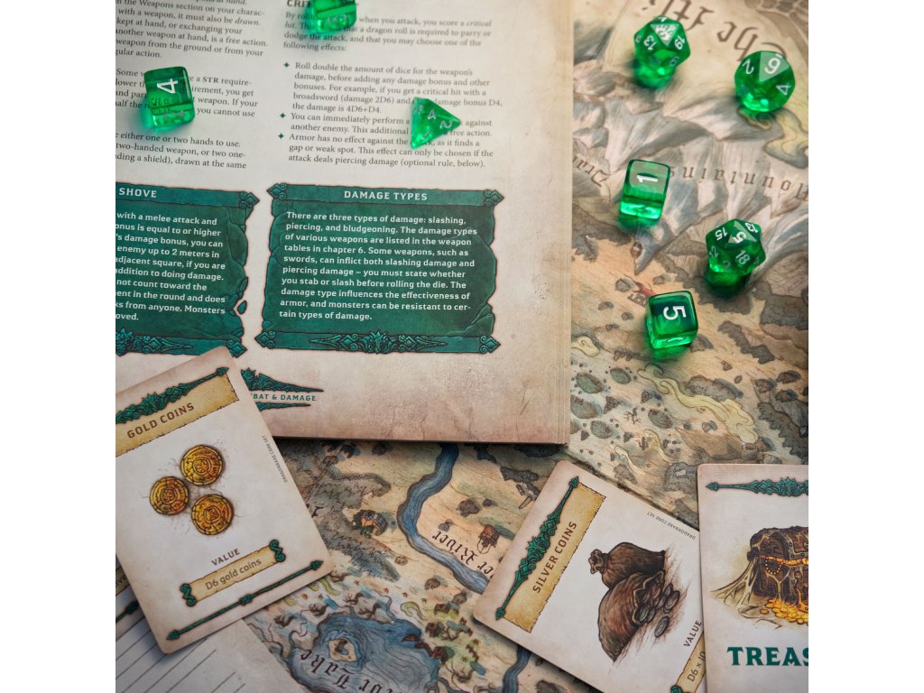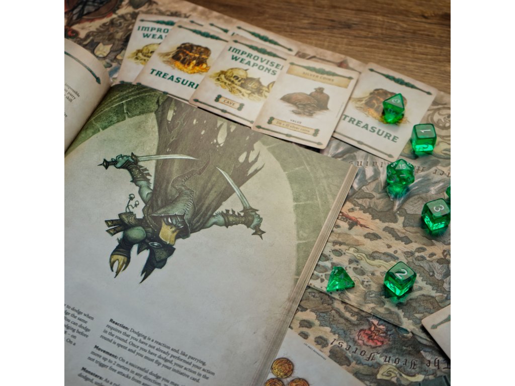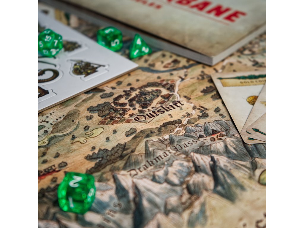 Dragonbane Core Boxed Set je sada pro klasickou fantasy hru na hrdiny od švédských autorů - první a nejrozsáhlejší RPG ze Skandinávie. Dragonbane Core Boxed se umístilo na 1. místě v ocenení Ennies 2024 za nejlepší Mapu v RPG. Sada je v angličtině. In the oldest times, the world was ruled by dragons and demons. They were the primordial forces through which the world and its primeval matter was formed. They were opposing principles that made the world complete. Law and order versus chaos and madness. Dragons versus demons. Dragonbane is a classic fantasy tabletop roleplaying game full of magic, mystery, and adventure. It is designed from the ground up to facilitate fast and furious play, with very little prep time and adventures that are a breeze to run. Dragonbane is a game with room for laughs at the table, while still offering brutal challenges for the adventurers. This boxed core set includes: Rulebook with fast and effective D20-based game rules for character creation, skills, combat, magic, and travel Adventures book with eleven complete adventures, to be played separately or tied together in the epic Secret of the Dragon Emperor campaign The booklet Alone in Deepfall Breach letting you play Dragonbane solo Huge full-color map of the Misty Vale Illustrated playing cards for adventures, treasure, and more Ten transparent polyhedral dice, including two custom D20s Five pregenerated characters Five blank character sheets Cardboard standees for characters and monsters Double-sided battle mat Dragonbane is a translation of Drakar och Demoner, Scandinavia s first and biggest tabletop RPG, originally launched in 1982. This new and reimagined edition has one foot firmly planted in the heritage of decades of Swedish gaming and the other in the modern and innovative game design for which Free League Publishing is known worldwide.