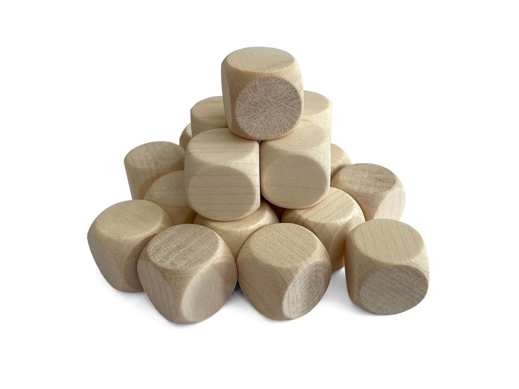 Vytvoř si své vlastní jedinečné kostky pro svou hru nebo párty! Dřevěnou šestistěnnou kostku bez zdobení si můžeš sám upravit podle svého gusta. Kostky lze přidat do deskovek nebo je použít jako učební pomůcku. Dej jim puntíky, čísla nebo obrázky a užij si hody plné kreativity a fantazie! Hrana kostky má 1,6 cm, rohy jsou zaoblené. Uvedená cena je za 3 kostky.