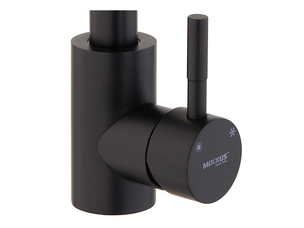 Dřezová baterie MIXXUS SEO-011 BLACK REFL. BLACK - robustní a elegantní dřezová baterie z nerezové oceli SUS304, která odolá vysokému zatížení i vlhkému prostředí bez známek koroze. Vynikající poměr ceny a výkonu pro každého, kdo chce kombinaci spolehlivosti a stylu.