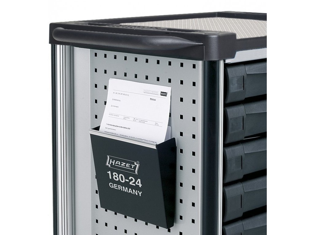 Držák dokumentů pro pracovní papíry je určen pro děrované desky s roztečí 38 x 38 mm. Připevněním na perforovaný panel lze rozšířit úložný prostor také pro sestavy dílenského nábytku, dílenské vozíky s nářadím i bez nářadí, pracovní stoly i policové regály.