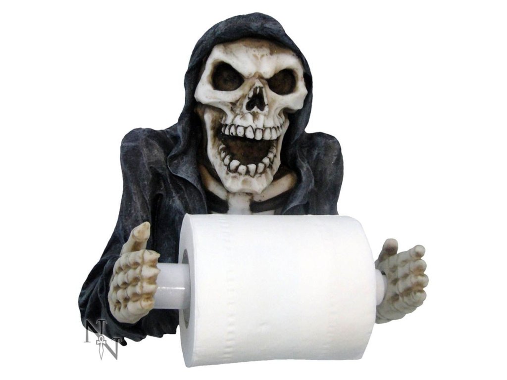 Držák na toaletní papír v podobě smrťáka bude jedinečným doplňkem vaší koupelny! Ručně malovaný smrťák z resinu pro originální domácnost.