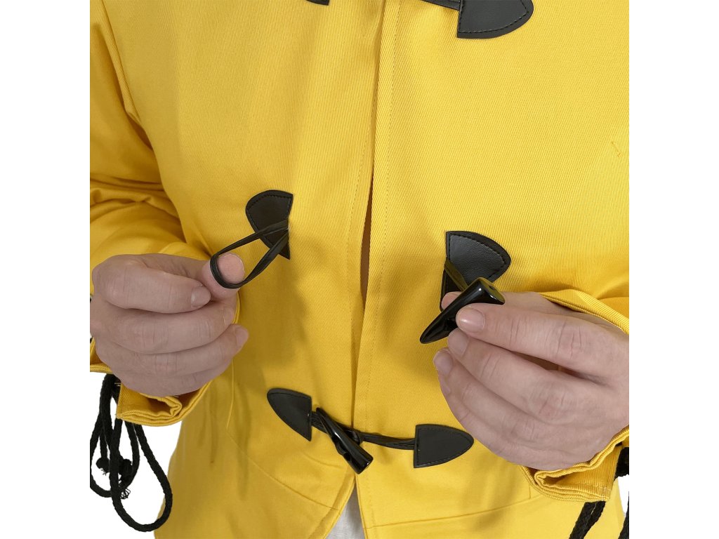 Dublet pro měšťany – Michelangelo je poctivě zpracovaný žlutý kabátec inspirovaný dobovým oděvem městského obyvatelstva pozdního středověku a raného novověku. Tento dublet vyrábíme výhradně v naší dílně – každý kus od základu navrhujeme s důrazem na detail a funkčnost. Základem je pevný kepr (plátnová bavlněná tkanina s jemnou strukturou), podšitý, a to pro větší pohodlí a lepší padnutí. Má elegantní, ale ne přehnaně okázalý střih, který vyhovuje postavám měšťanů, řemeslníků, písařů, cechovních mistrů nebo postav z bohatších vrstev nižší šlechty. Díky praktickému zapínání vpředu, pevnému provedení a neutrální červené barvě je dublet ideální pro kombinaci s dalšími vrstvami oděvu. Hodí se na historické slavnosti, larpové bitvy, fantasy akce, jako divadelní kostým a k dalším příležitostem. Lze ho různě dozdobit, třeba do stylu mocného Nilfgaardu ze světa Zaklínače.