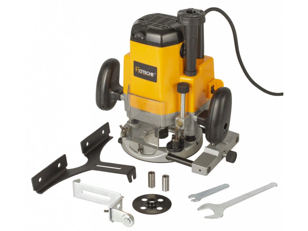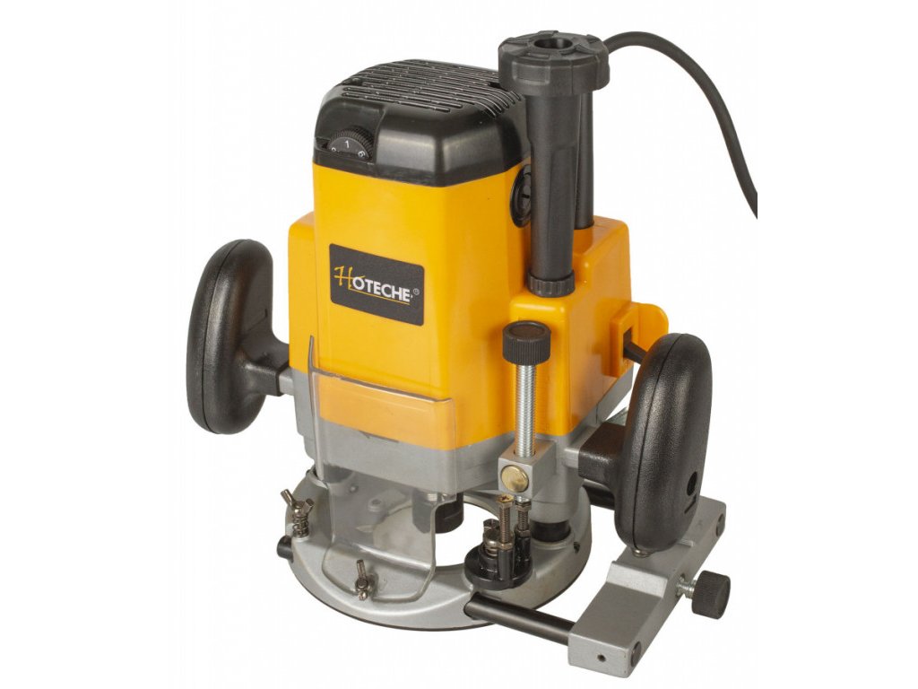 Výkonná horní frézka od značky Hoteche je určena k frézování drážek, žlábků, otvorů v měkkém i tvrdém dřevě nebo dřevotřískových deskách.