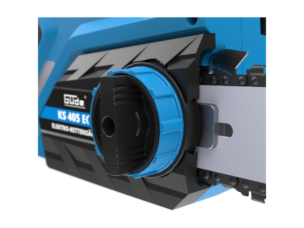 Elektrická řetězová pila s výkonem 2400 W, délka lišty 400 mm, rychlost bez zátěže 13 m/s.