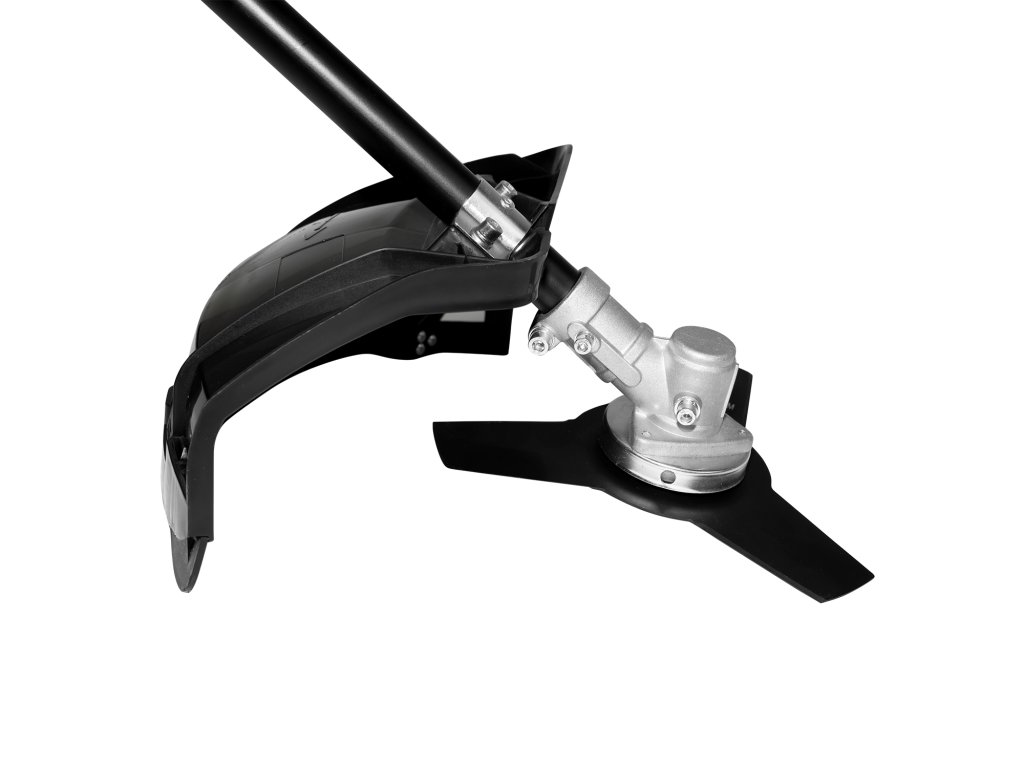 Motor s otáčkami 7000 ot./min zajišťuje plynulý výkon při sečení běžné i hustější vegetace. Funkce Soft start (pozvolný rozběh motoru) chrání zařízení i síť před proudovým nárazem při startu a zajišťuje bezpečnější a pohodlnější ovládání. Výměnná strunová hlava s poloautomatickým vysouváním umožňuje snadné doplňování struny, zatímco 3zubý kovový nůž se hodí pro náročnější porost.