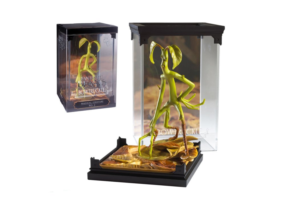 Soška Kůroleza (Bowtruckle) na motivy filmu Fantastická zvířata a kde je najít, ve vitríně. Soška má rozměry cca 10,8 cm na šířku a 18,4 cm na výšku. Obsah vitríny lze vyjmout. Kůrolez je strážcem stromů a je velmi těžké ho spatřit.