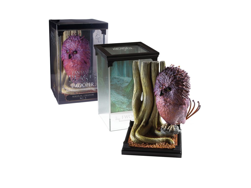 Soška Pastelníčka (Fwooper) na motivy filmu Fantastická zvířata a kde je najít, ve vitríně. Soška má rozměry cca 10,8 cm na šířku a 18,4 cm na výšku. Obsah vitríny lze vyjmout. Pastelníček je jasně zbarvený africký pták, jehož peří může být oranžové, růžové, limetkově zelené nebo žluté. Jeho zpěv může člověka činit šíleným, v zajetí bývá tento pták tlumen tišícím kouzlem.