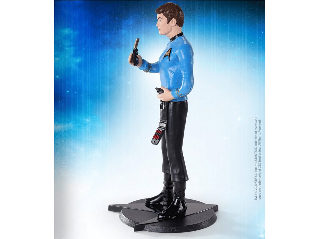 Polohovatelná figurka Doctor McCoy s komunikátorem a lékařskou soupravou ze seriálu Star Trek potěší každého sběratele! Figurku můžete polohovat dle libosti, součastí balení je podstavec s ikonickým symbolem Hvězdné flotily.