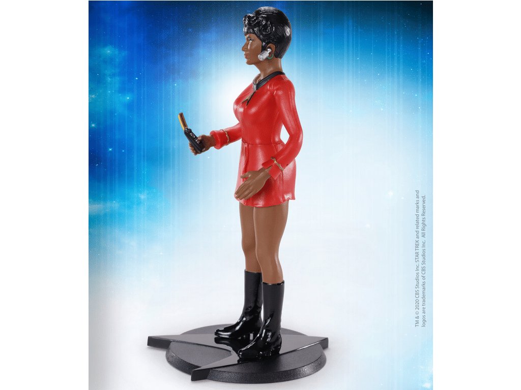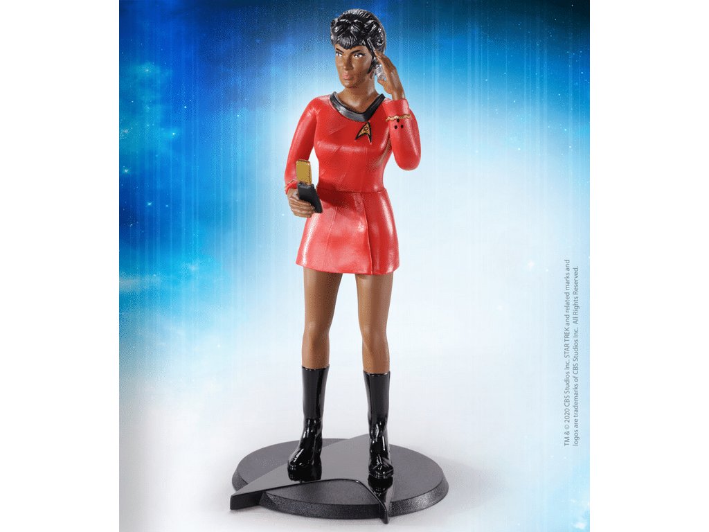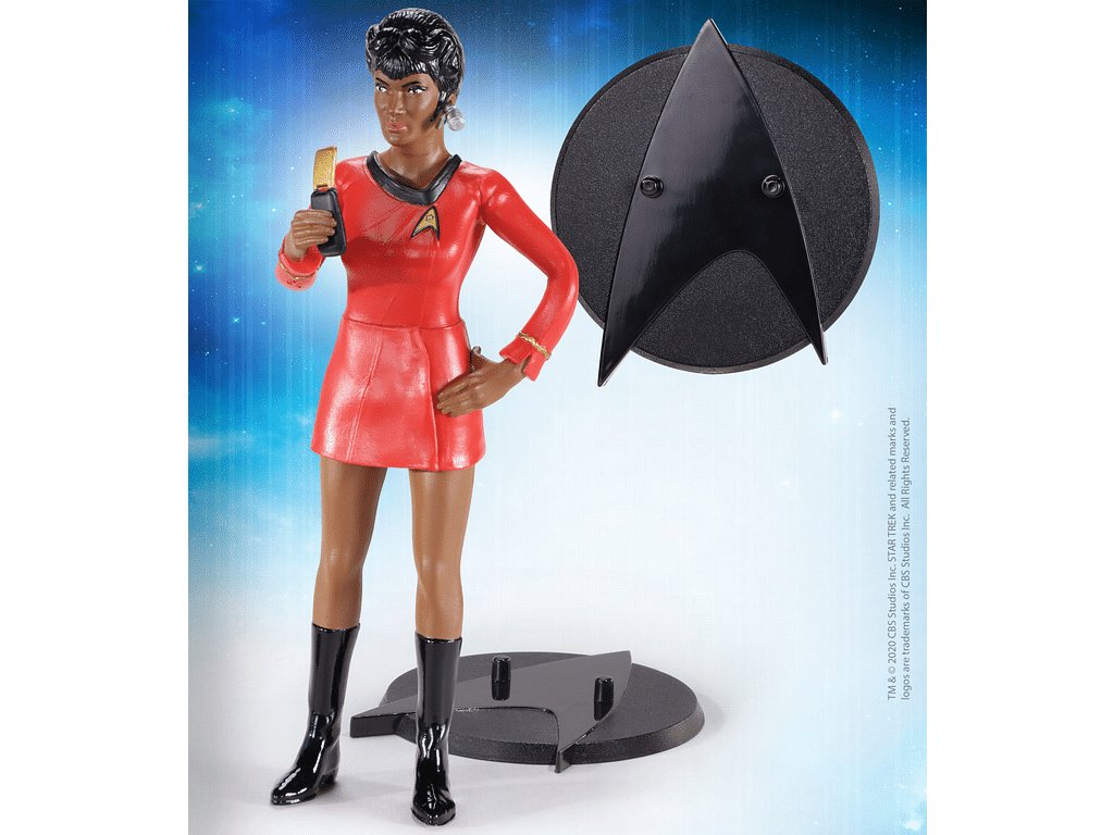 Polohovatelná figurka Uhura s komunikátorem a sluchátkem ze seriálu Star Trek potěší každého sběratele! Figurku můžete polohovat dle libosti, součastí balení je podstavec s ikonickým symbolem Hvězdné flotily.