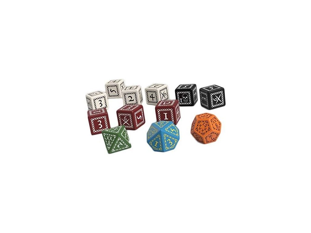 Sada obsahuje 12 kostek pro hru na hrdiny Forbidden Lands RPG. Kostky jsou geavírované, se speciálními symboly pro tuto hru na hrdiny, lze je ale také využít i pro hraní jiných her.