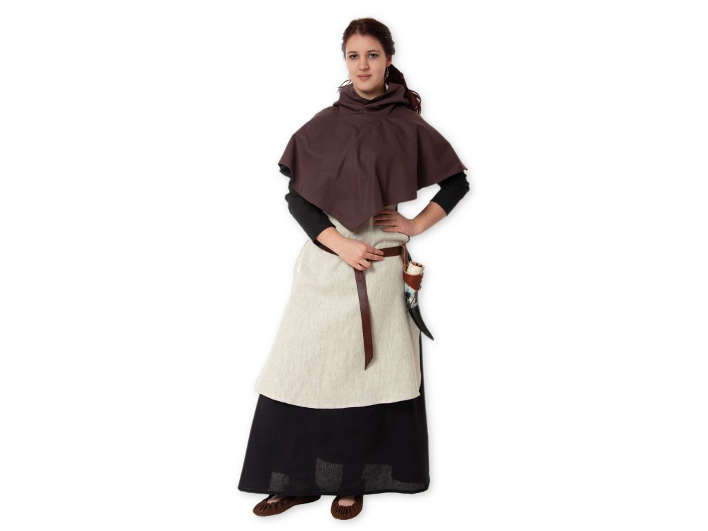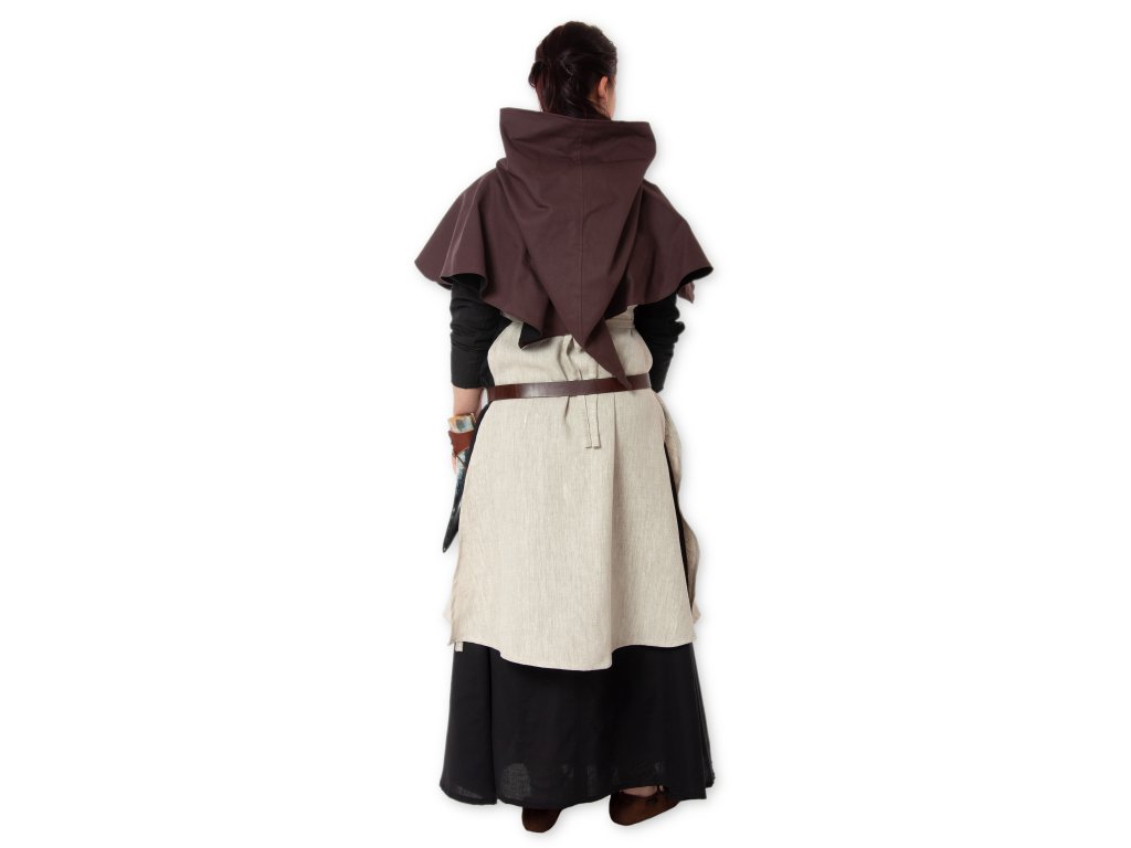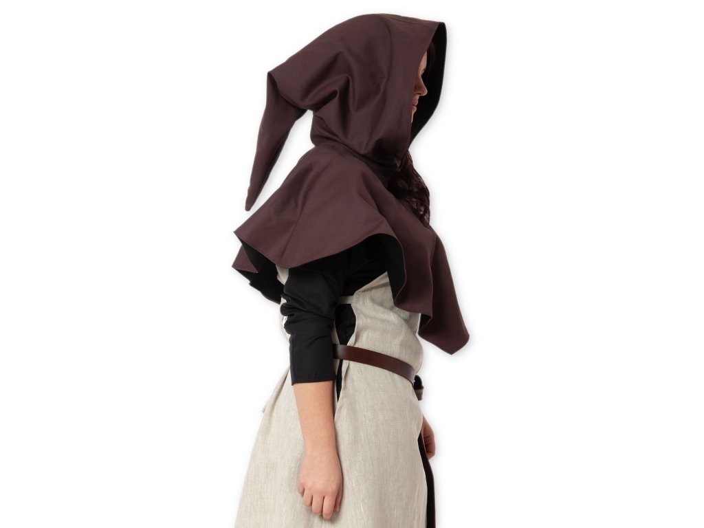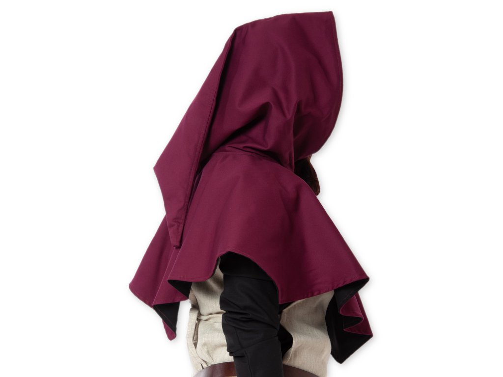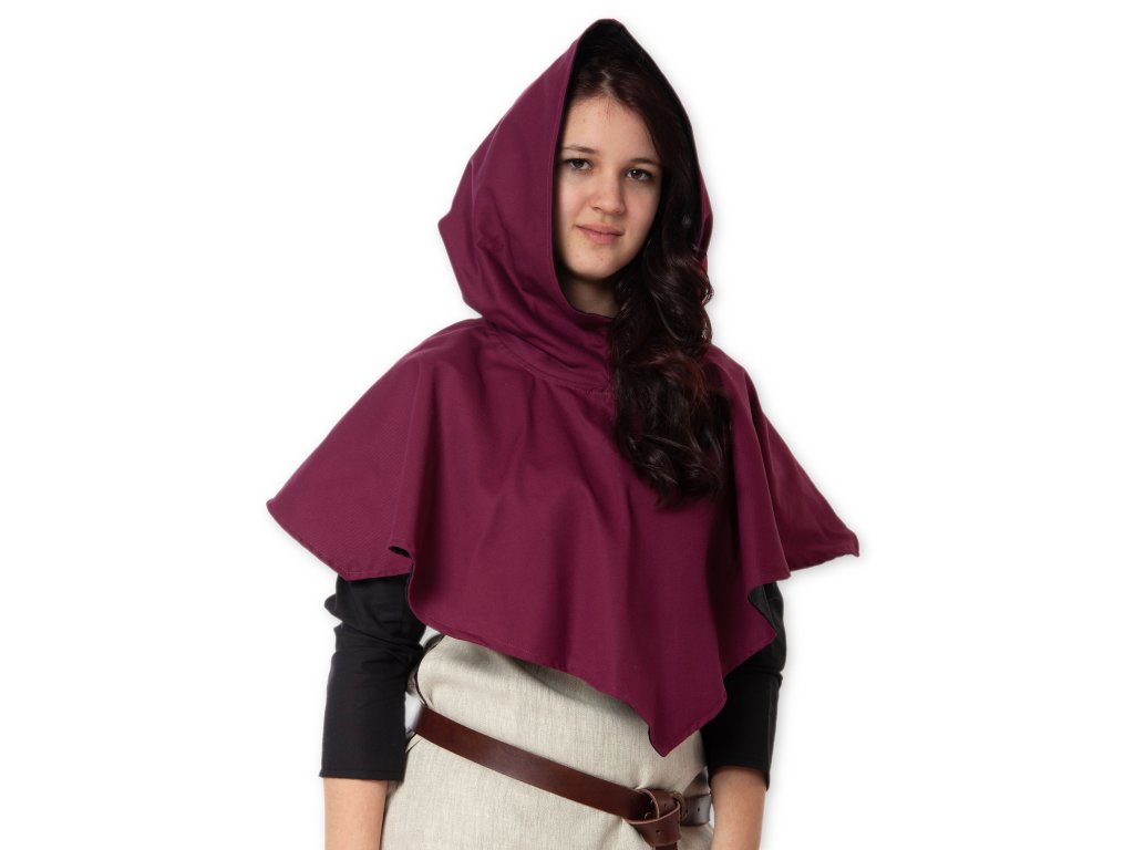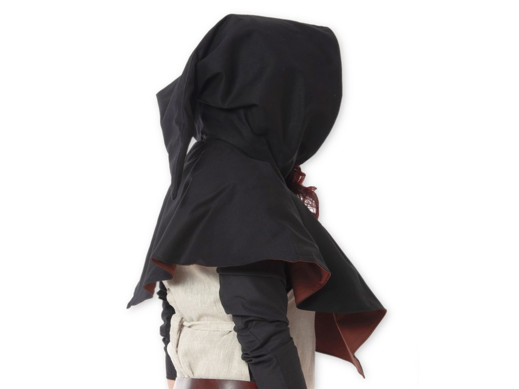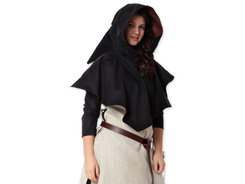 Ve středověku si svou hlavou na krku nikdy nejste jisti, ukryjte raději svou tvář do stínu kápě! Kápě je skvělým doplnkěm k historickému či fantasy kostýmu a za poměrně slušný peníz zařídí velkou parádu . Dokáže oživit a stylizovat i prostý kostým. Zároveň se jedná o praktický doplňěk chránící hlavu a vrchní část trupu před nepřízní počasí. Naše gotická kápě zakrývá ramena i větší část trupu a je zakončena protažením do cípu na přední i zadním straně. Je ušita z kepru a pro pohodlné nošení má podšívku z bavlněného plátna. K mání jsou tři barevné varianty: černá, hnědá a vínová. Více o použitém materiálu se dočtete zde: popis materiálů.