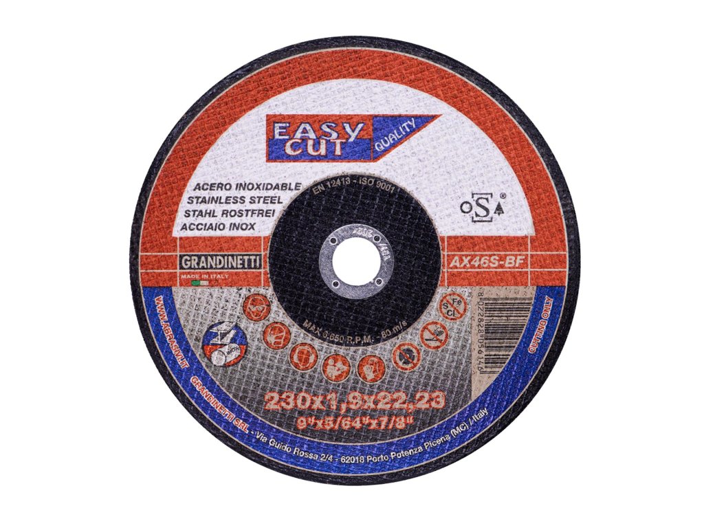 Řezný kotouč GRANDINETTI se používá k řezání oceli a nerez oceli. Výroba přísně podléhá normám EN12413, EN 13743 a FEPA.