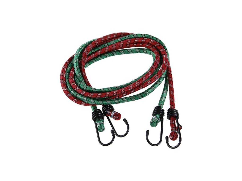 Elastické gumové popruhy, opletené polyesterem a zakončené oboustranně háky z ocelových poplastovaných drátů k uchycování zavazadel.