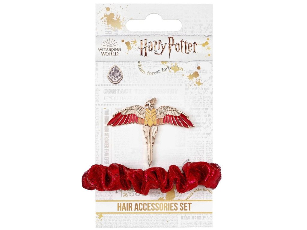 Sponka do vlasů a gumička s motivy Fawkese, fénixe profesora Albuse Brumbála z Bradavic. Krásné ozdoby do vlasů pro milovníky příběhů o Harry Potterovi. Rozměry spony jsou cca 5 x 4 cm.