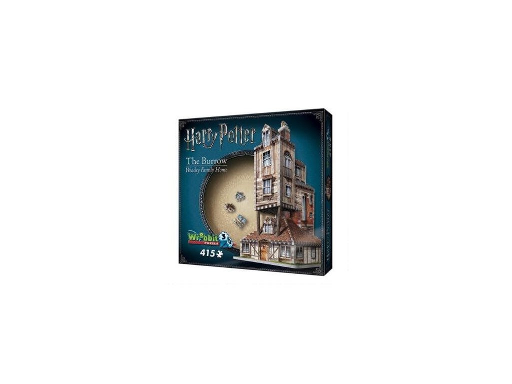 Trojrozměrné puzzle rodinného domu Weasleyových - Doupěte, podle knih a filmů o čarodějnickém učni Harry Potterovi. Puzzle tvoří 415 dílků. Puzzle je vyrobeno z netoxického pěnového polyetylenu a nevyžaduje lepidlo. Rozměr krabice je 30 x 30 x 7,5 cm. Rozměr sestaveného puzzle je 22 x 22 x 39 cm. Vyrobeno v Quebecu.