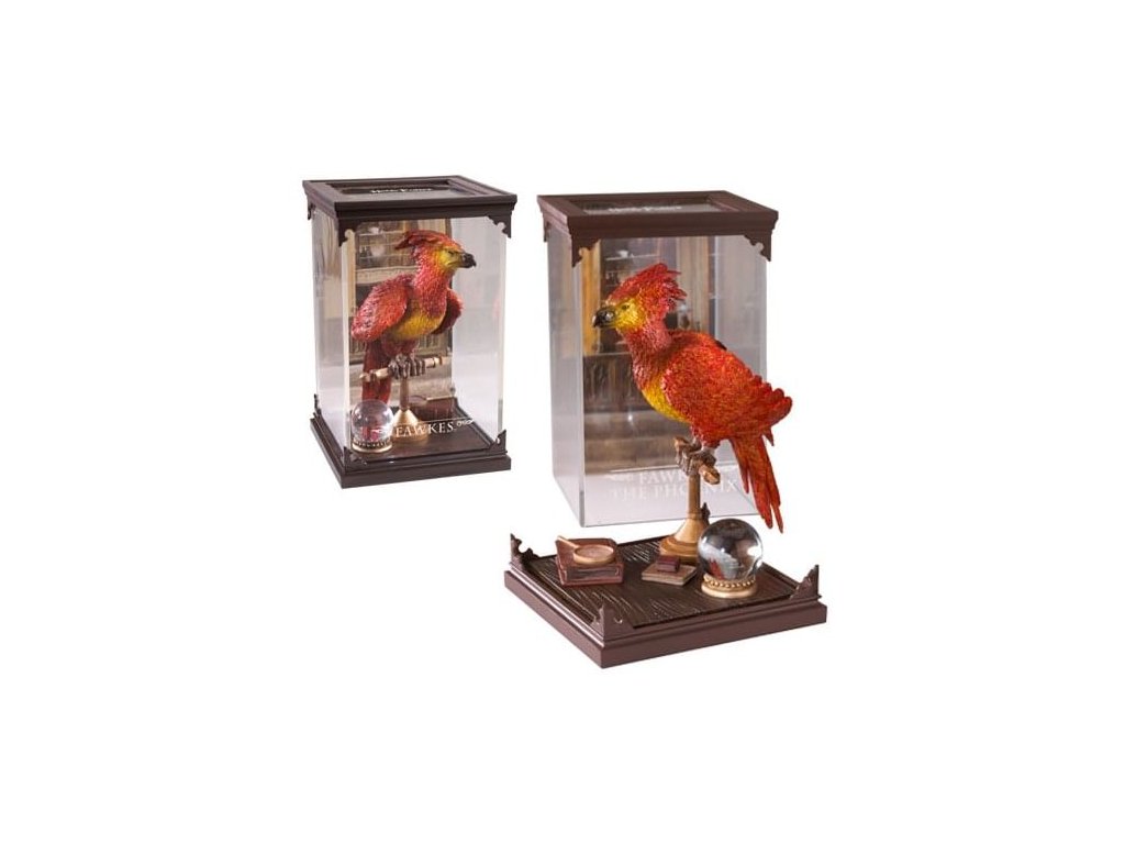 Soška fénixe Fawkese ze světa kouzelnického učně Harryho Pottera, ve vitríně. Soška má rozměry cca 10,5 cm na šířku a 18,5 cm na výšku. Obsah vitríny lze vyjmout. Fawkes je vysoce inteligentní fénix Albuse Brumbála, jeho společník a ochránce.