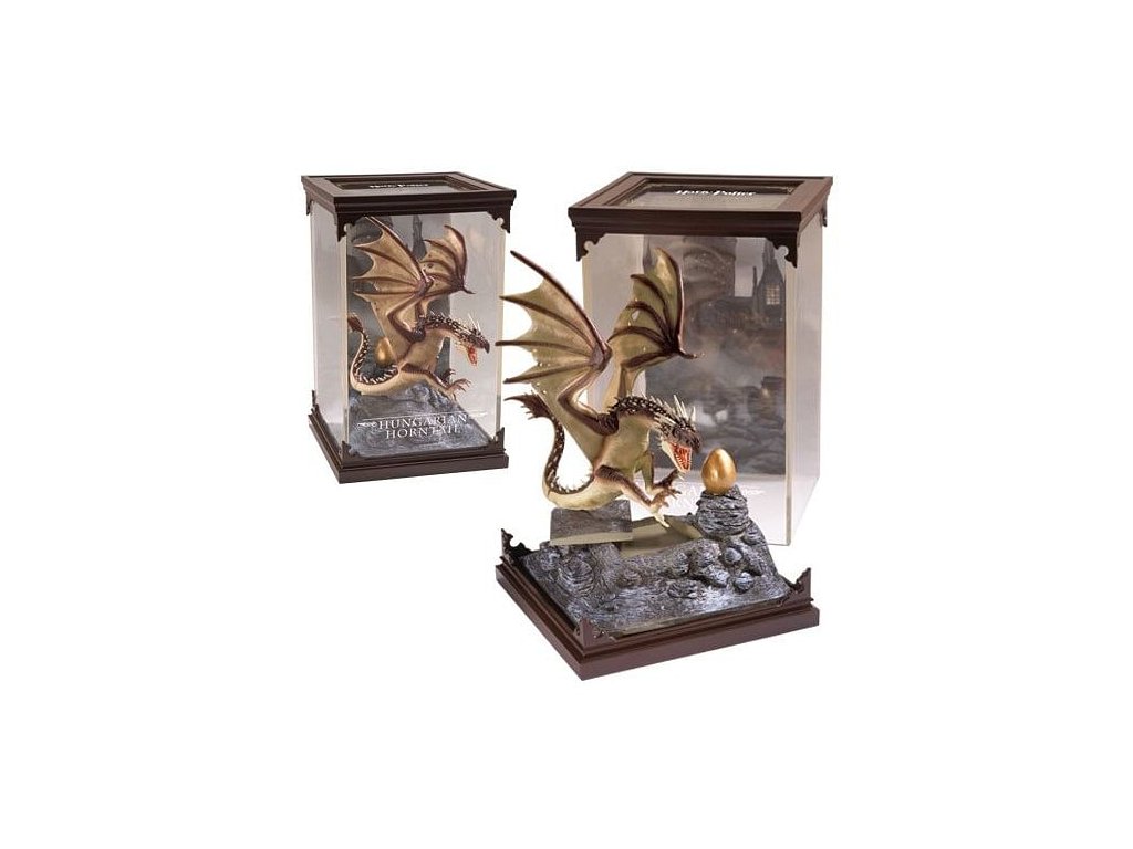 Soška maďarského trnoocasého draka ze světa kouzelnického učně Harryho Pottera, ve vitríně. Soška má rozměry cca 10,5 cm na šířku a 18,5 cm na výšku. Obsah vitríny lze vyjmout. Maďarský trnoocasý drak je známý jako ten nejagresivnější drak vůbec a Harry Potter mu čelil během Turnaje tří kouzelníků.