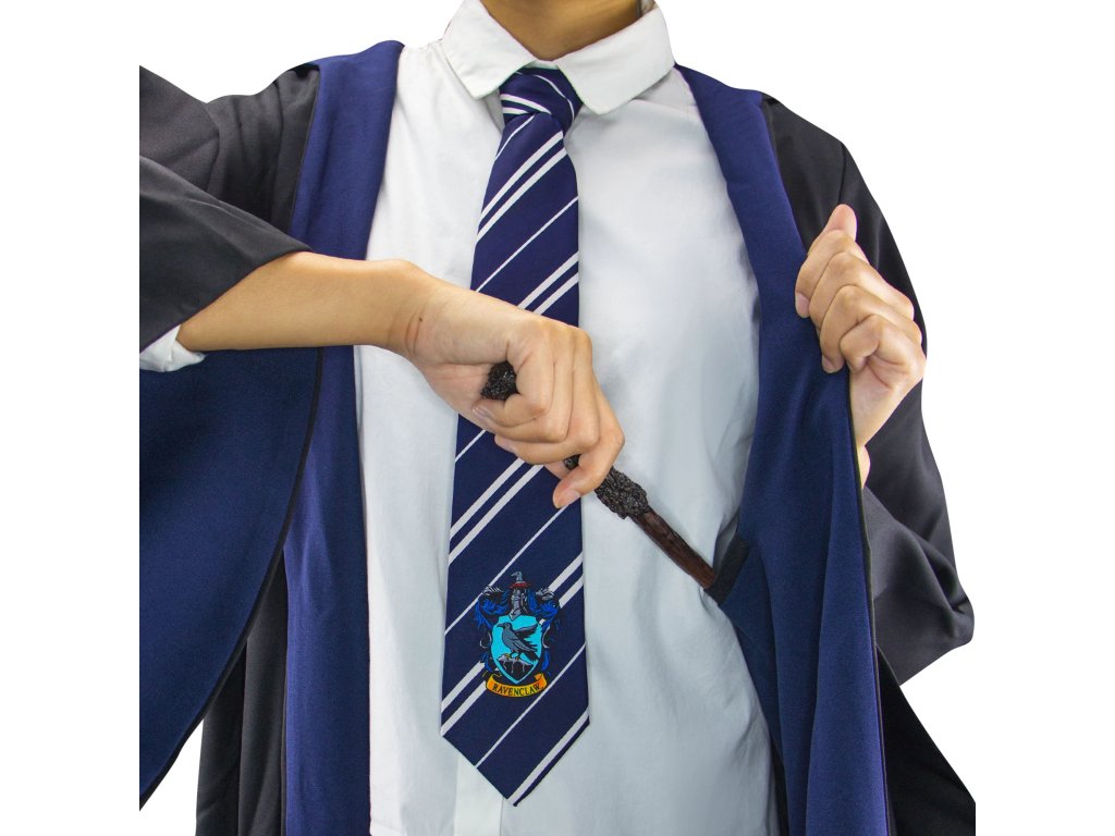 Dlouhý černý čarodějnický hábit s kapucí, modře podšitý. Je zhotoven dle filmové předlohy bradavických hábitů studentů koleje Havraspáru z Bradavické školy čar a kouzel. Hábit je ideální prát na ruční praní do 40 stupňů, nesušit v sušičce na prádlo, žehlit přes navlhčenou bavlněnou látku.