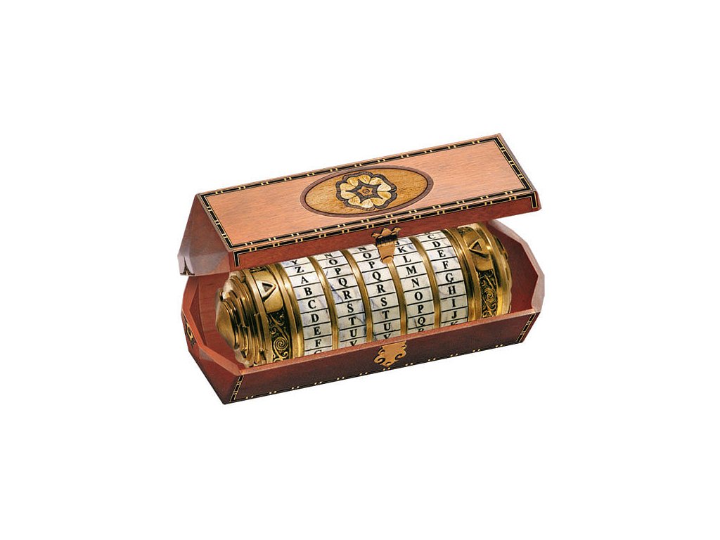Do detailu propracovaný model kryptexu (v orginále cryptex) dle předlohy z filmu Šifra mistra Leonarda (The Da Vinci Code). Kód pro otevření lze změnit, uvnitř schránky je prostor o velikosti cca 12,7 x 2,5 cm, kde můžete uchovávat své cennosti - ať už jsou to klíčky, vzácné psaní nebo třebas poezie. Repliku dodáváme včetně zdobené dřevěné krabičky (velikost cca 12 cm, délka 22 cm).