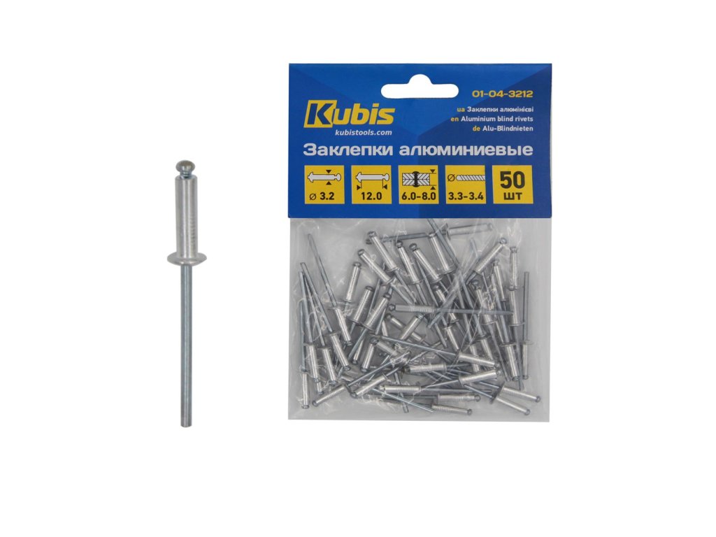 Hliníkové nýty 3,2*10 mm (nýtovatelná tloušťka 4-6 mm), 50 ks | 01-04-3210