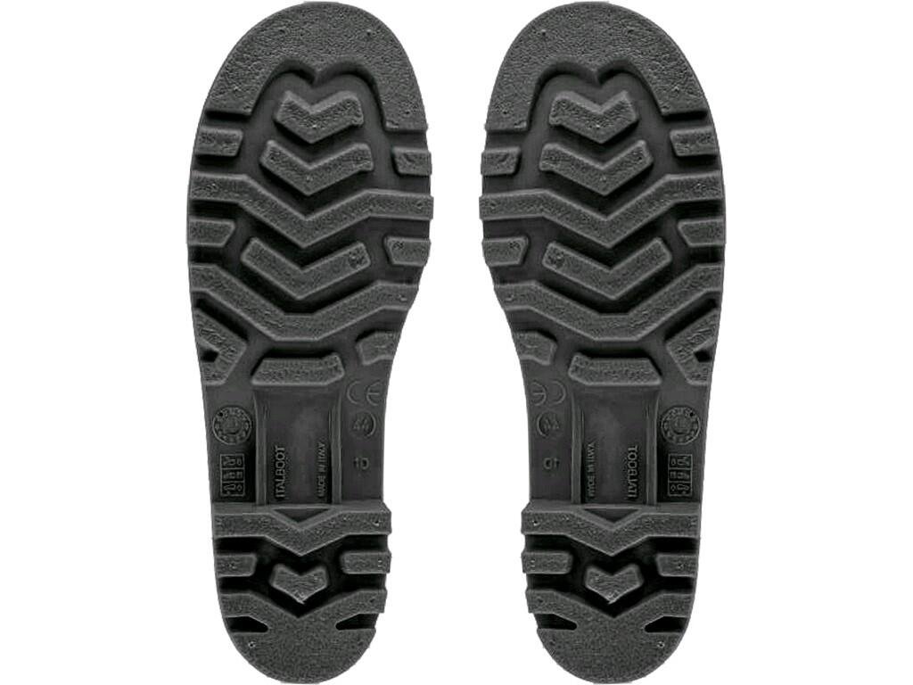 Pracovní holínka. Absorbce energie v patní části. Protiskluzová, antistatická, olejivzdorná podešev.