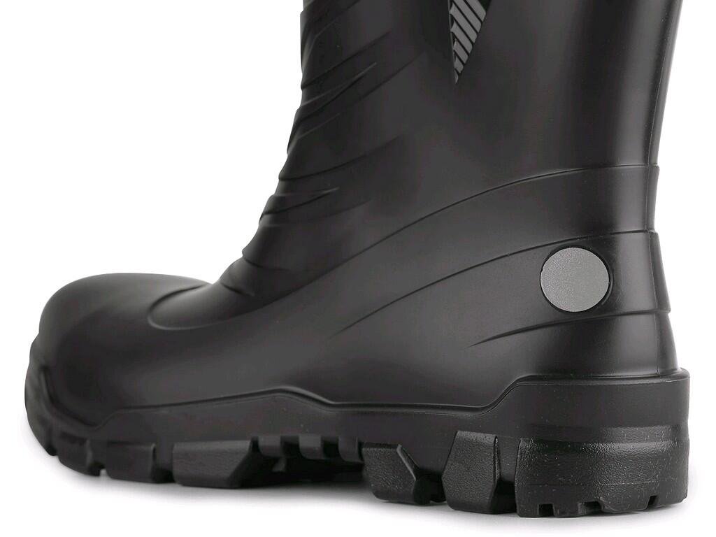 Bezpečnostní holínka s kompozitní špicí, reflexní doplňky. Absorbce energie v patní části. Protiskluzová, antistatická, olejivzdorná podešev.