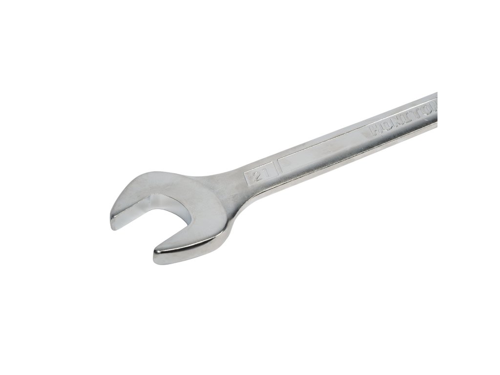 Pevný a odolný klíč z chrom-vanadiové oceli s dvanáctihranným očkem, vyhnutým o 15° pro snazší práci.