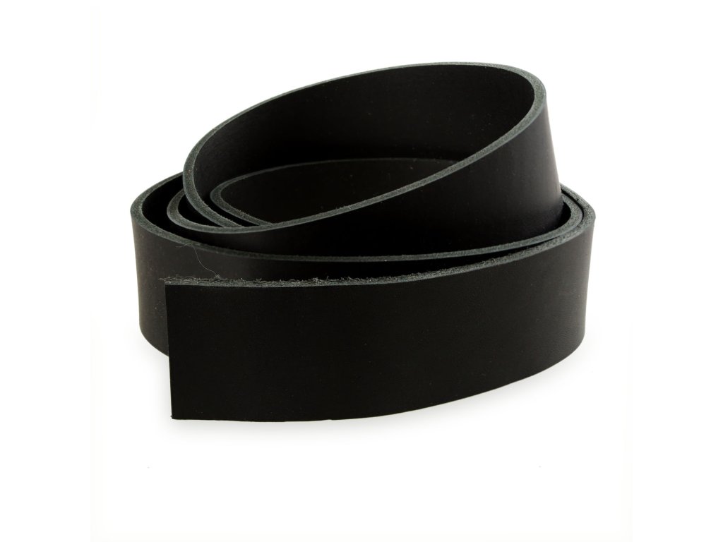 Řemen z černě probarvené hovězí kůže síly cca 3,5-4 mm, která je hlazená z jedné strany. Ideální k výrobě opasku o šířce 4 cm. Kůže na opasek je k dispozici také v hnědé a přírodní barvě. Máme pro vás také hotové pásky o šířce 3 cm (hnědý, černý i přírodní).