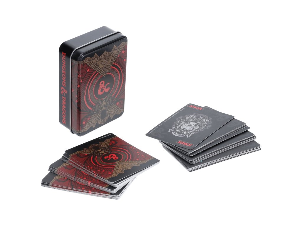 Zahrajte si svou oblíbenou karetní hru stylově! Karty v hezké plechové krabičce zdobí obrázky světově oblíbené hry na hrdiny Dungeons and Dragons!