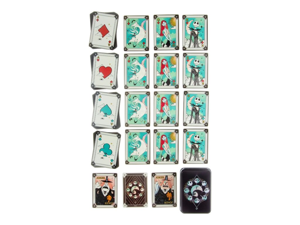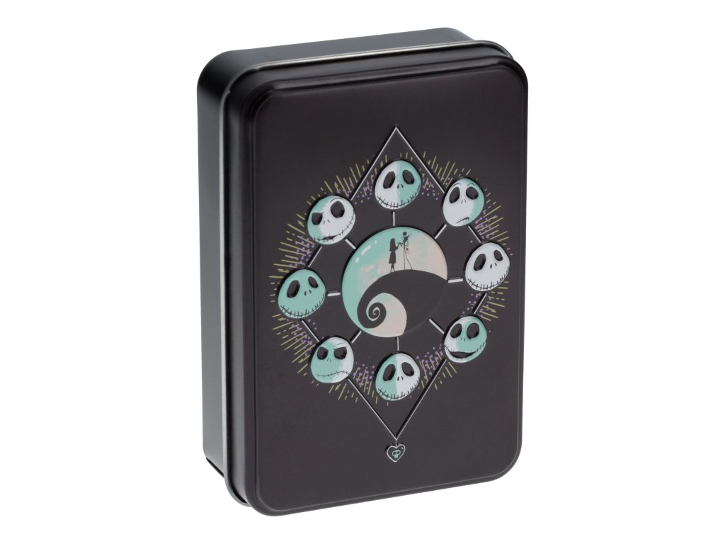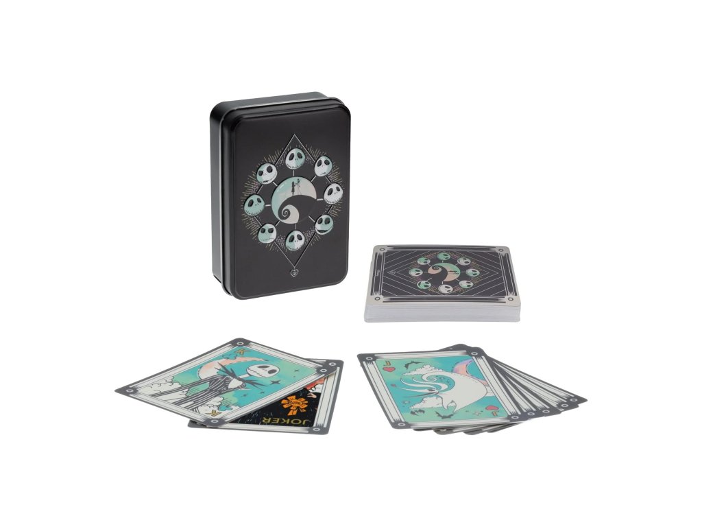 Zahraj si karty s obrázky z animovaného filmu Ukradené Vánoce (Nightmare Before Christmas) od Tima Burtona. Uvnitř stylové černé plechové krabičky najdeš 52 hracích karet a 2 žolíky s obrázky z oblíbeného animáku. Skvěle se hodí na hraní doma s rodinou, tak na cesty s přáteli!