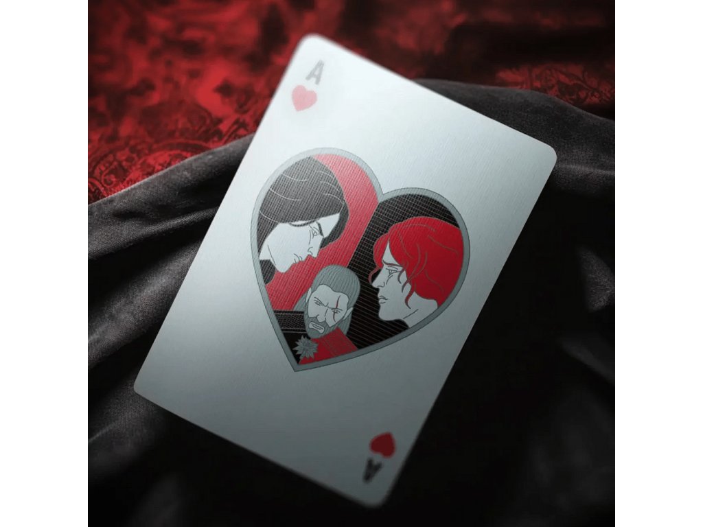 Ponoř se do temného světa Zaklínače s touto exkluzivní Red Edition hracích karet. Každá karta je výtvarným dílem, které zachycuje známé postavy i legendy z Kontinentu – od esa pikového s Ciri po žolíky v podání Jaskiera a Klepny. Balíček představuje hned čtyři tváře Geralta z Rivie – při boji, na lovu, v sedle i při sesílání znamení – a doplňuje je silné ženské postavy jako Yennefer a Triss. Království zaklínačů reprezentují Vesemir, Eskel, Letho a Lambert jako kluci, zatímco Divoký hon si bere eso křížové. Tato edice potěší nejen hráče karetních her, ale především fanoušky ságy a herního Zaklínače. Je to kousek, který si zaslouží místo ve sbírce – nebo v batohu na cesty po stezce.