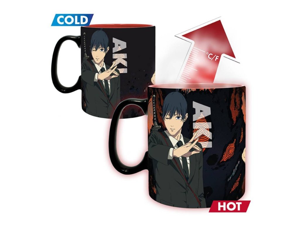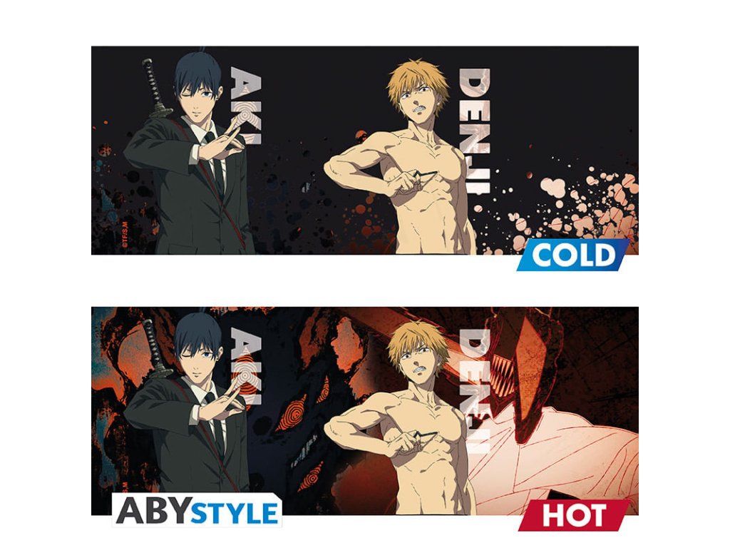 Vychutnej si svůj oblíbený nápoj s tímto unikátním měnícím se hrnkem Chainsaw Man s motivem Denjiho a Akiho! Jakmile do něj naliješ horký nápoj, hrnek se promění a odhalí ilustrace tvých oblíbených postav z této kultovní série. Perfektní doplněk pro všechny fanoušky anime a manga. Ideální na kávu, čaj nebo cokoli horkého – a také skvělý dárek! Hrnek není vhodný do mikrovlnné trouby ani do myčky nádobí.