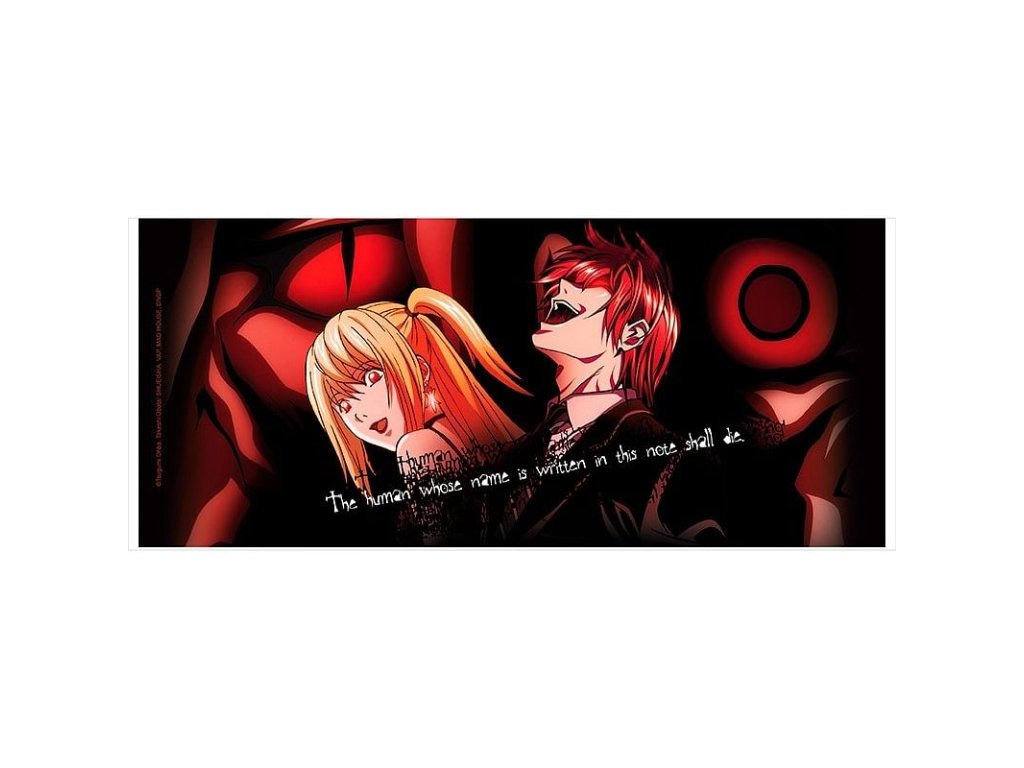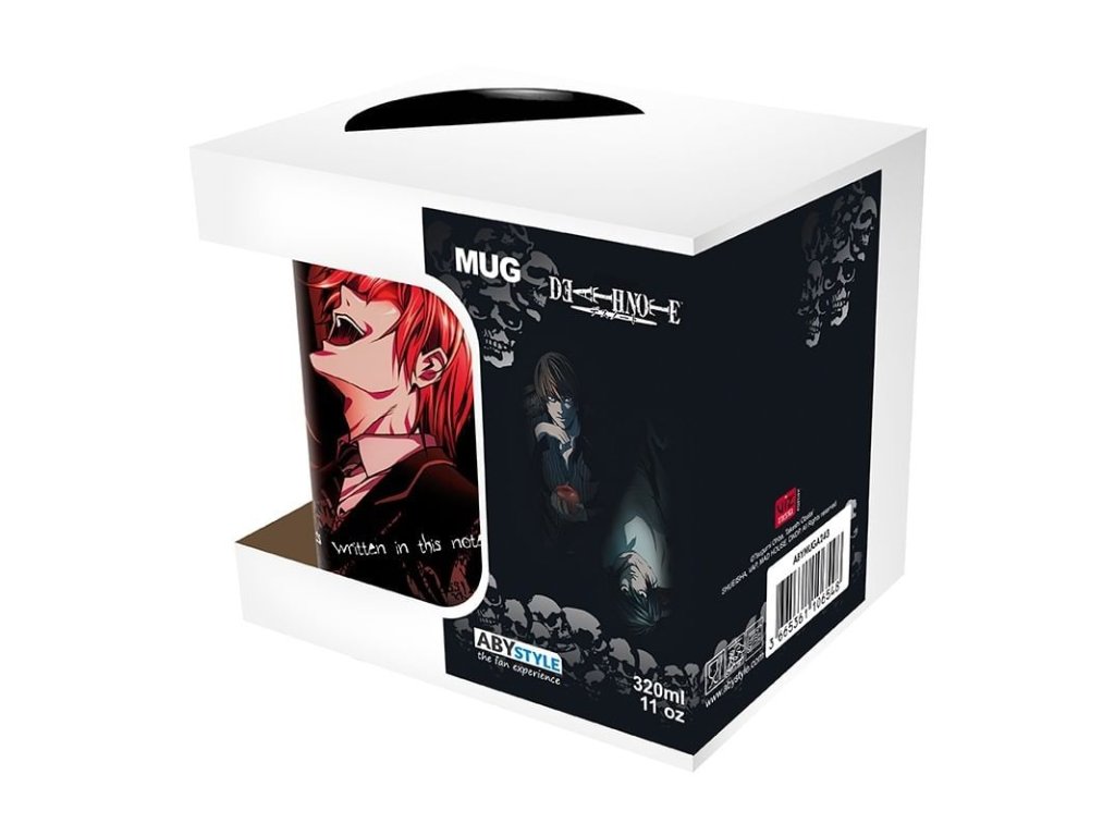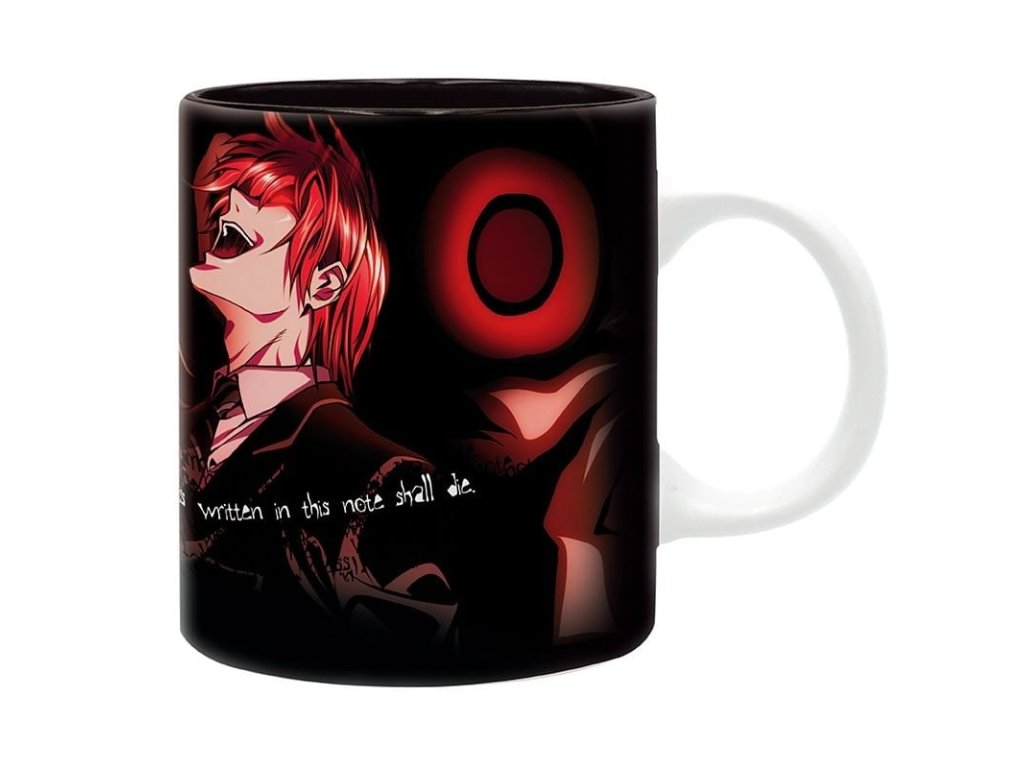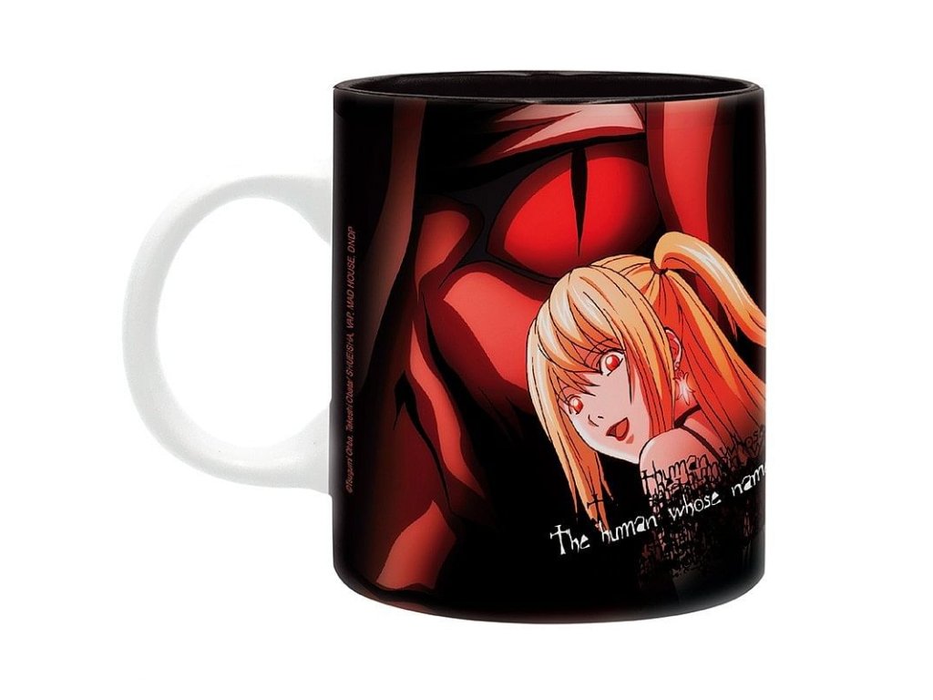 Pěkný černý hrnek pro fanoušky japonské mangy Death Note - Zápisník smrti zdobí smrtící pár Misa a Light. Hrnek, se kterým si užijete kriminální aktivity všeho druhu!