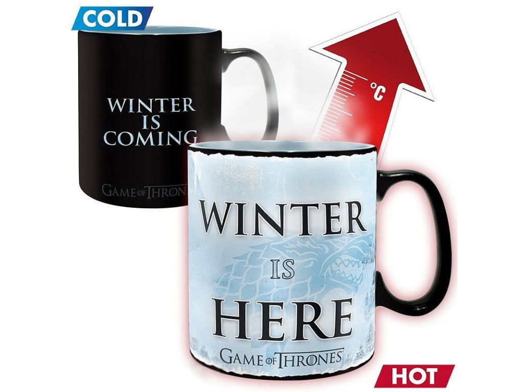 S hrnkem pro fanoušky fantasy seriálu Game of Thrones - Hra o trůny stačí jen nalít teplý nápoj a zima je rázem tady! Sledujte měnící se grafiku spolu hrnku s Jonem Snowem. Zima přichází - Zima je tady! Hrnek není vhodný do mikrovlnné trouby ani myčky nádobí.