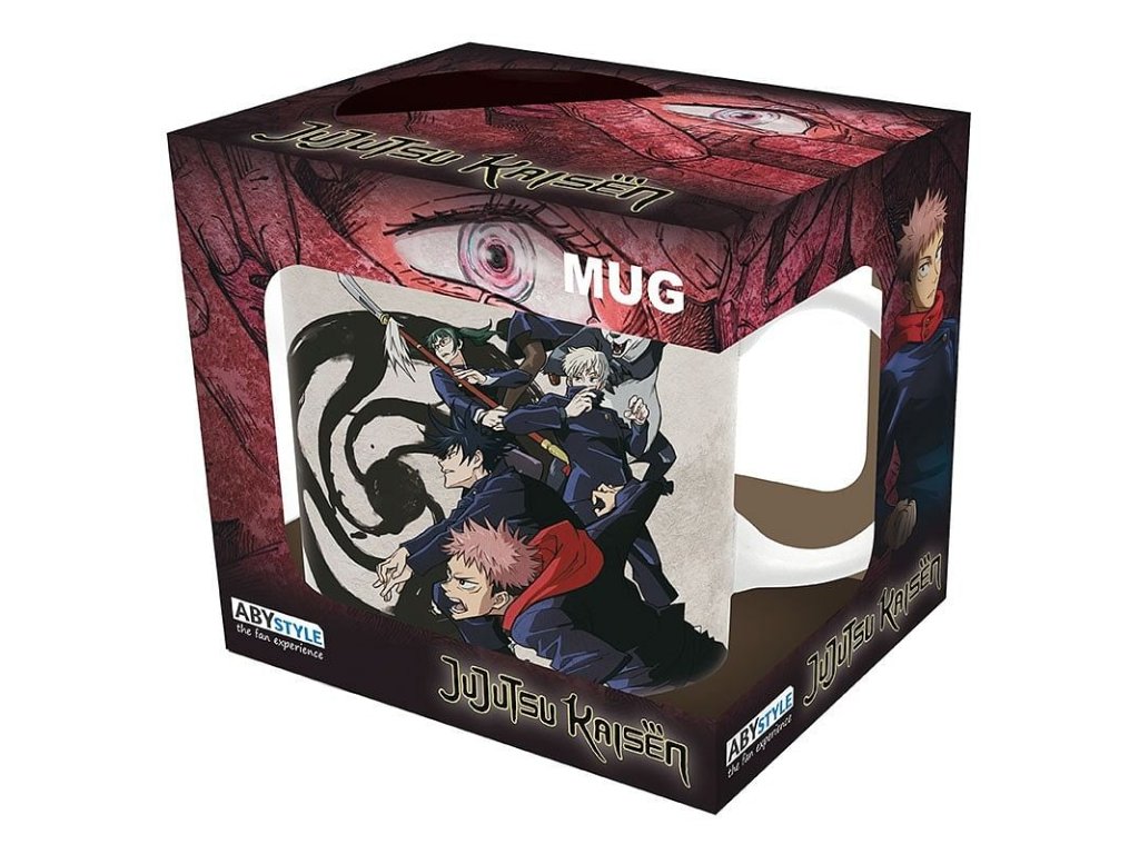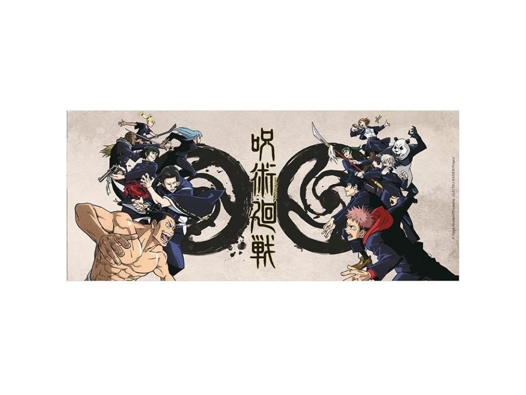 Na hrnku s grafikou z populární japonské mangy Jujutsu Kaisen se právě střetávají zástupci škol Kyota a Tokya. Komu dnes budete fandit?